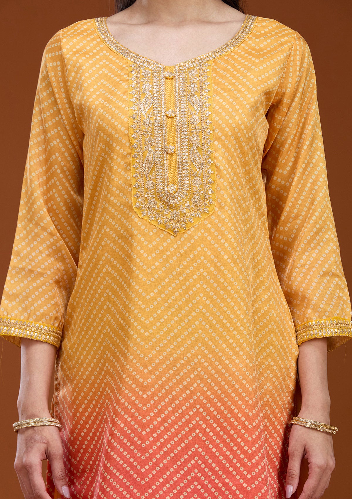 Yellow Sequins Soft Raw Silk Readymade Salwar Suit