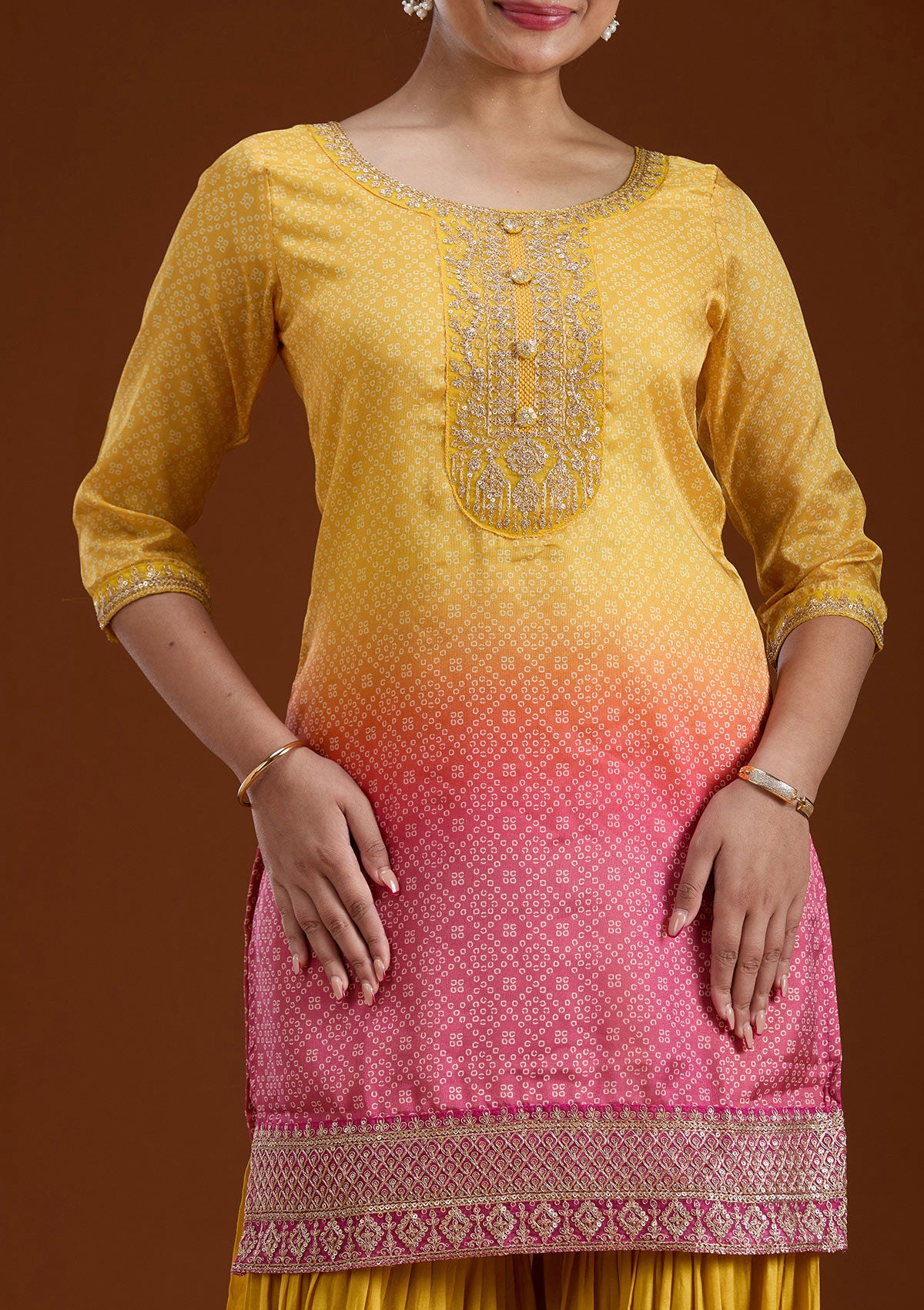 Yellow Sequins Soft Raw Silk Readymade Sharara Suit