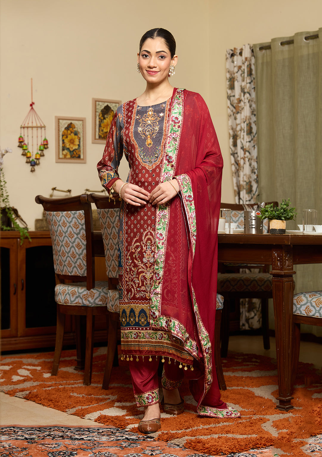 With Koskii’s extraordinary Anarkali suit designs and vibrant colours, we aim to satisfy your fashion desires flawlessly. Want to glow in sequin ethnic apparel at your cousin’s reception? Shop our onion pink georgette Anarkali suit with delicate sequin work, or buy a silver zari embroidered wine-coloured suit for a shimmery look. Here are some tips to select the right one for you: