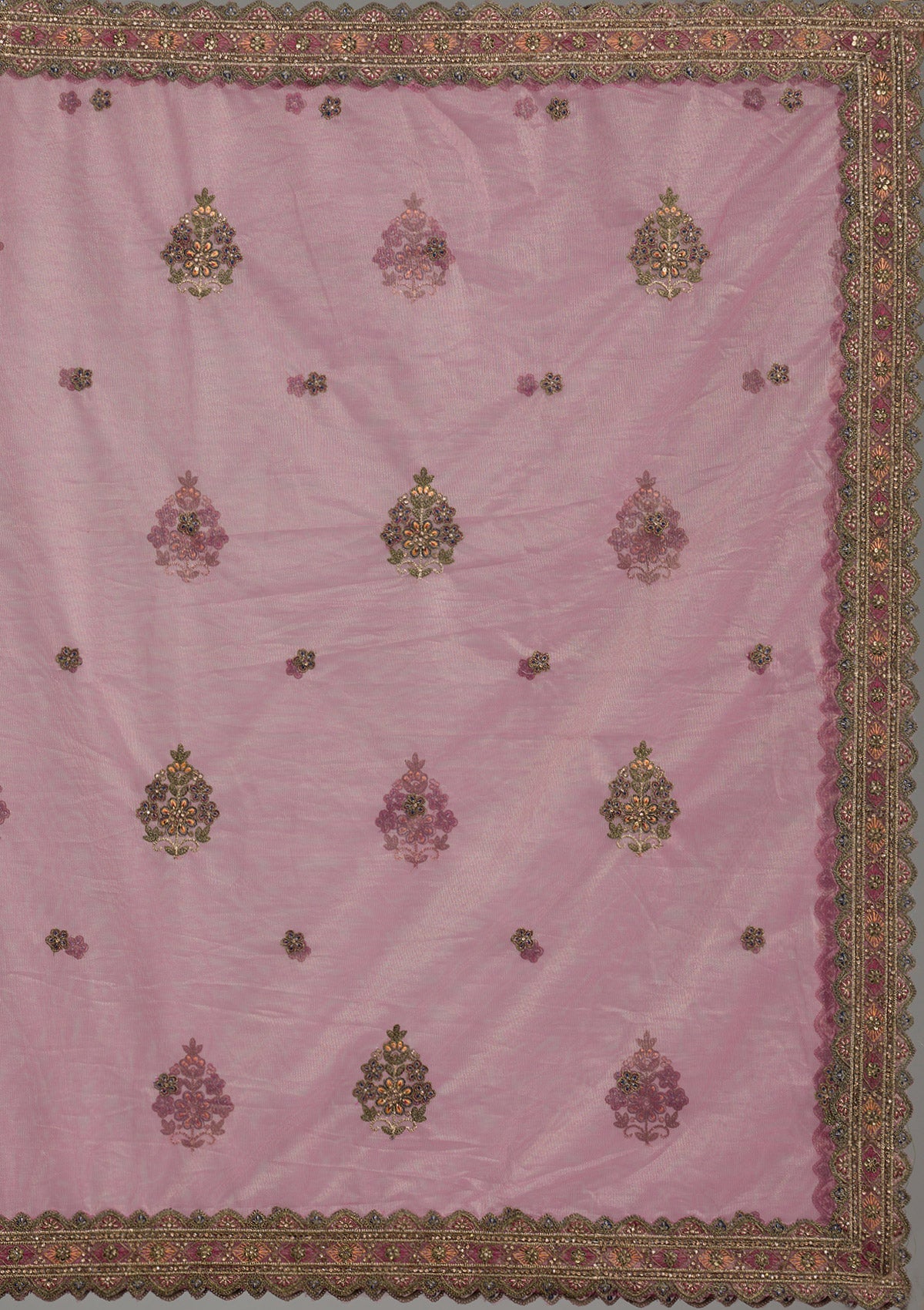 Lavender Zariwork Tissue Semi Stitched Lehenga