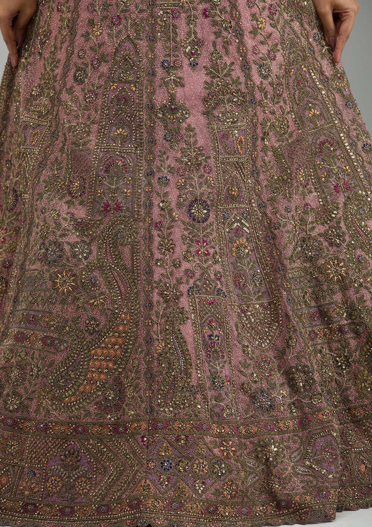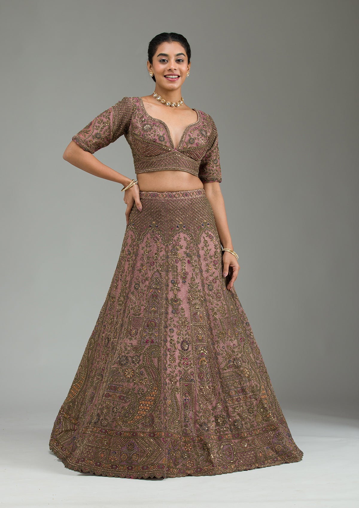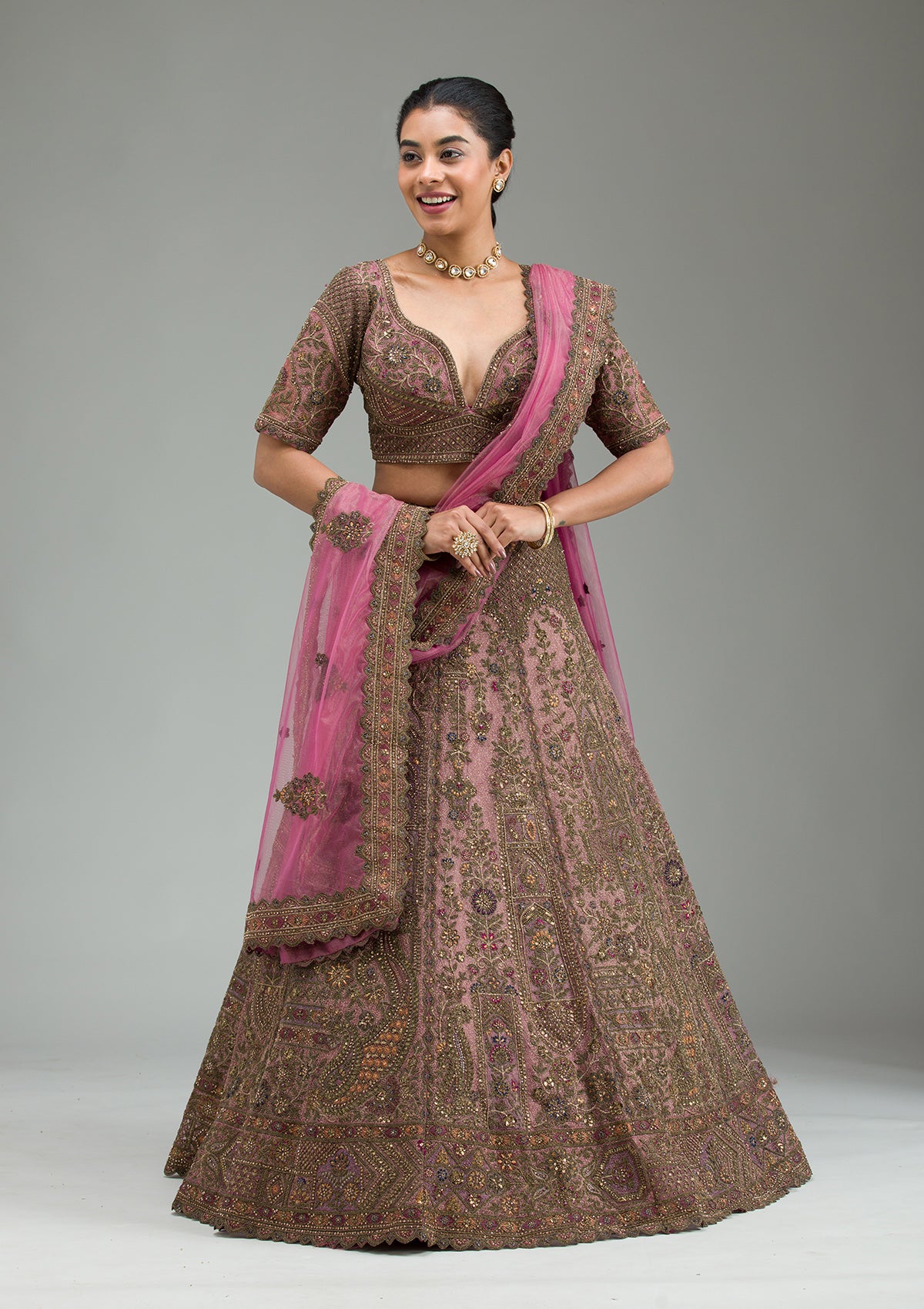 Dive into the world of regal charm with Koskii's breathtaking mauve lehenga, where every twirl tells a tale of elegance! This masterpiece, crafted from ethereal net fabric and adorned with exquisite zari embroidery, promises to make you the emblem of timeless grace at any grand affair. Radiate confidence and celebrate your vibrant spirit in a lehenga that's as unique and effervescent as you!.