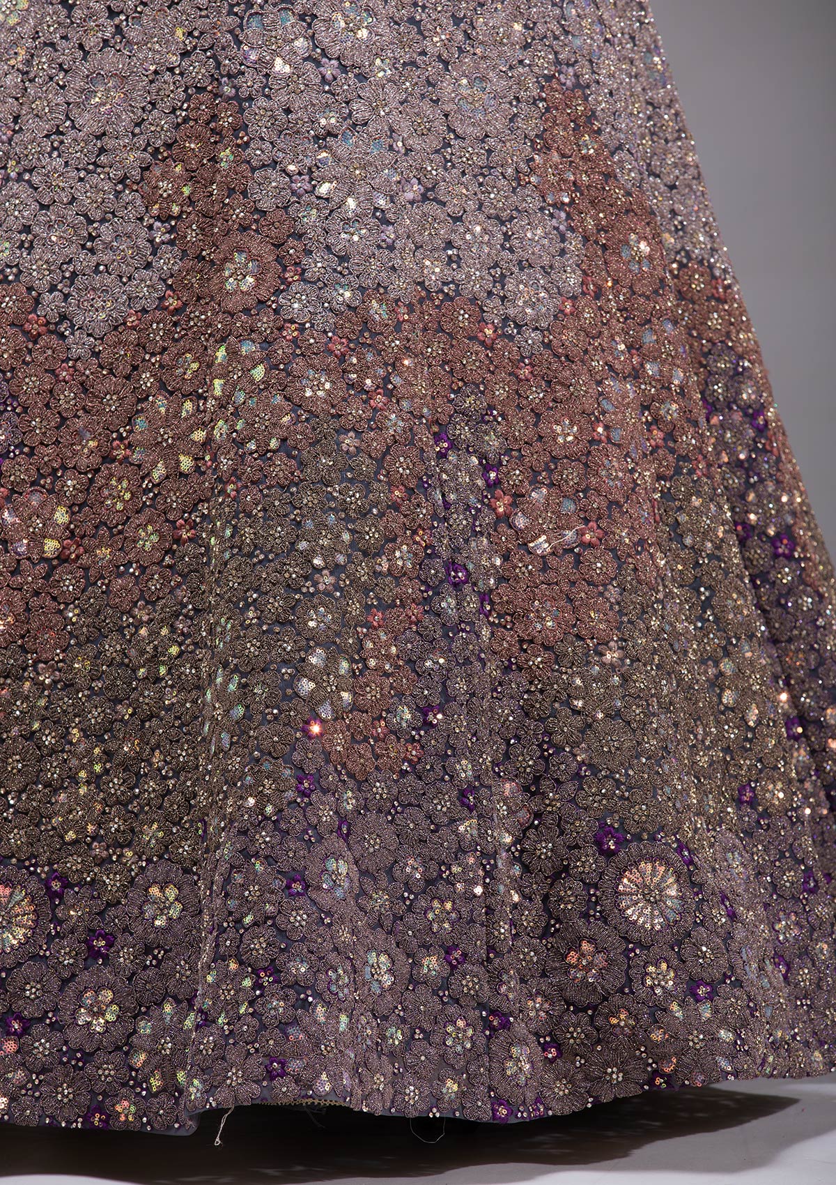 Step into a world of whimsical charm with Koskii's Lavender Net Lehenga, a masterpiece adorned with exquisite zari embroidery that dances across sheer net fabric. This dazzling ensemble promises a spotlight-stealing silhouette, perfect for those who love to turn heads with their style. Let the spiraled patterns and radiant hues of this Koskii creation add a splash of playful elegance to your festive occasions!