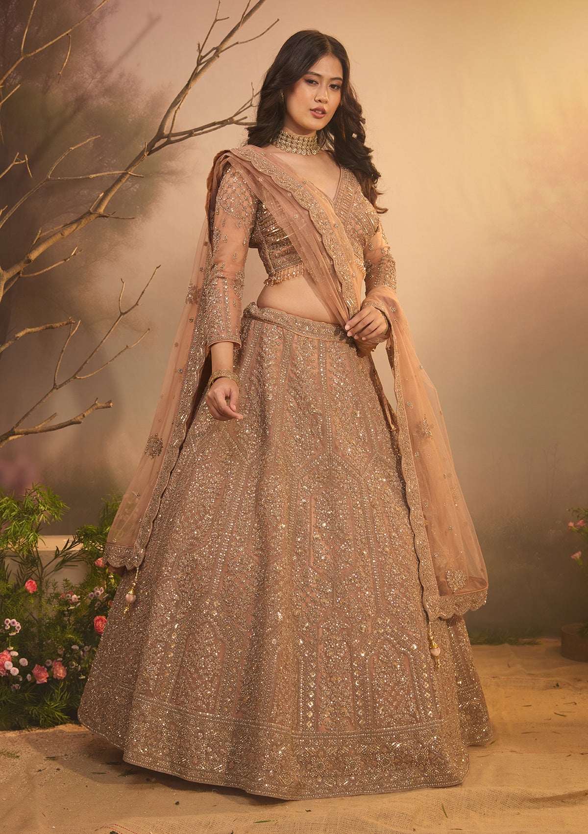 Step into a realm of splendid dazzle with Koskii's Gold Lehenga, meticulously crafted in sumptuous net fabric that unfolds like a dream under twinkling lights. Embellished with majestic zariwork that adds a golden glow to every twirl, this ensemble promises a magical presence at luxurious events. Embrace your spirited side in this vibrant, playful masterpiece that's designed to make you the star of the evening!