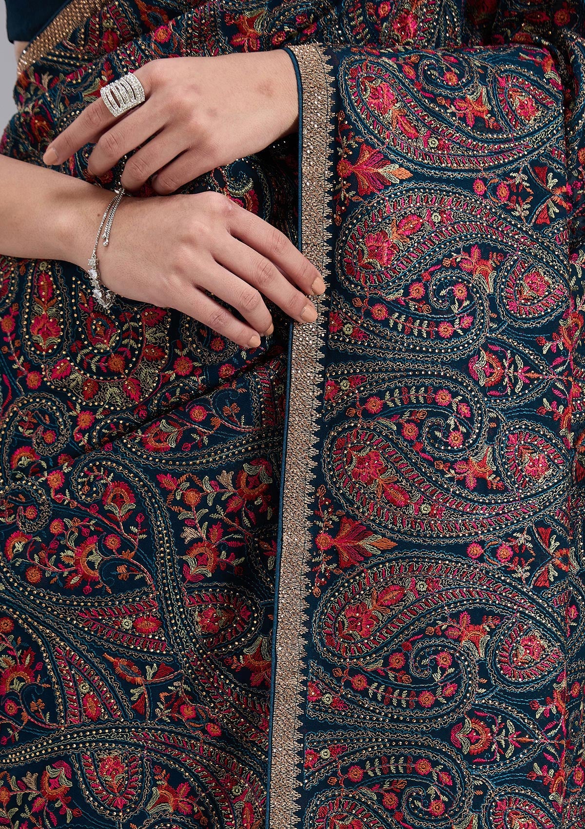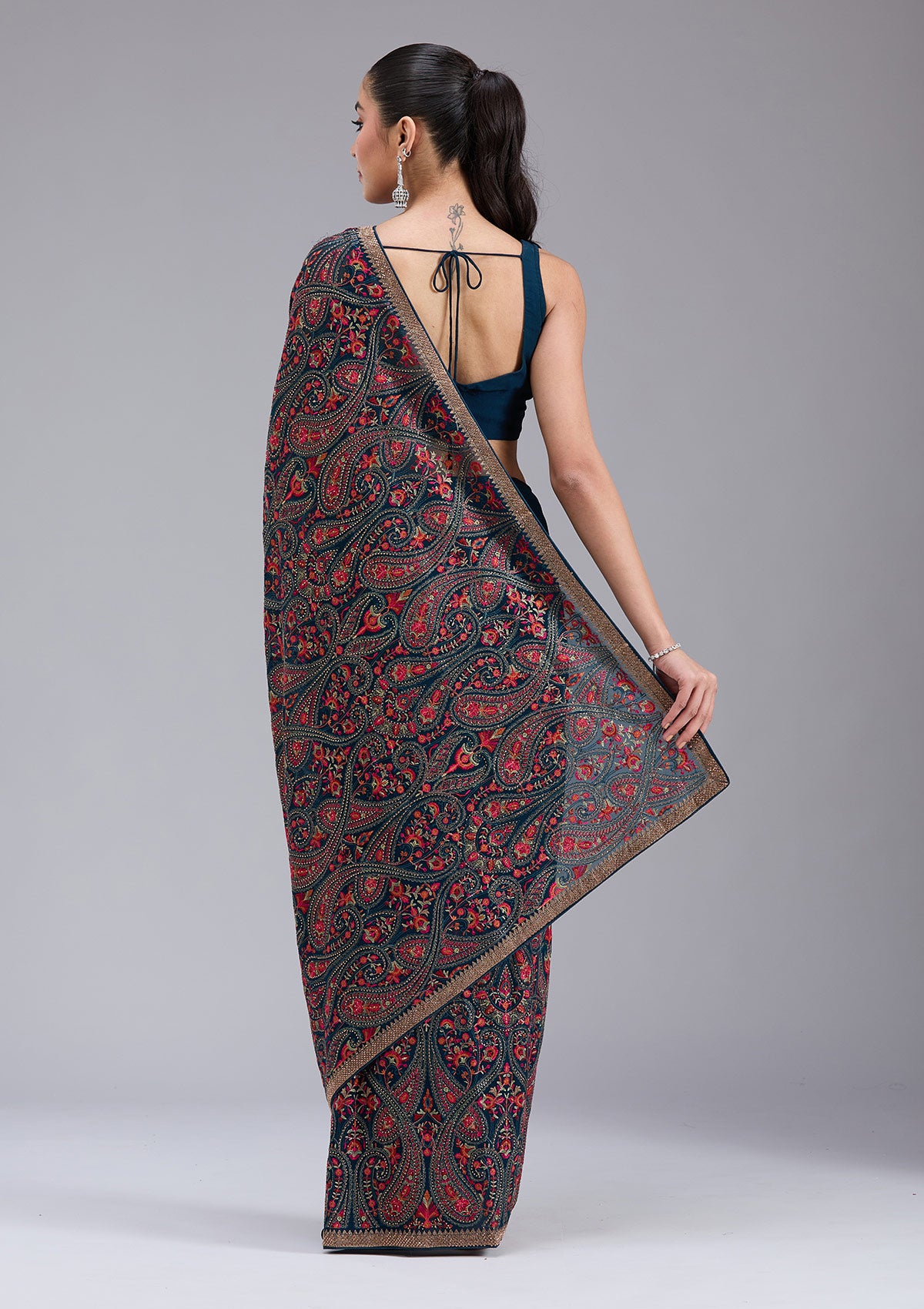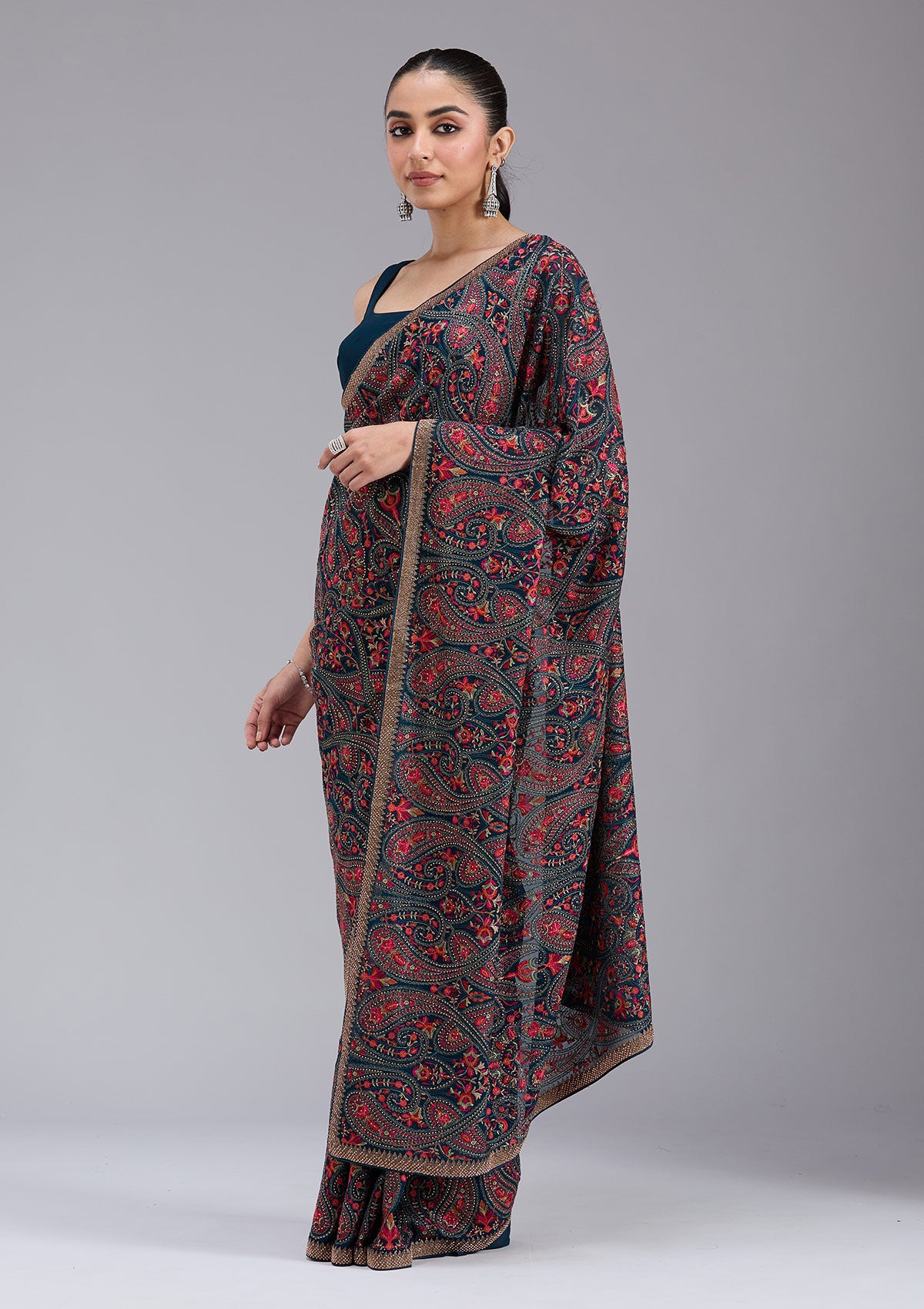 Peacock Blue Kashmiri Georgette Saree