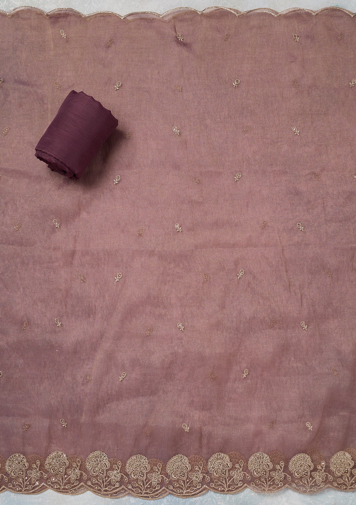 Wine Salwar Suit in Tissue fabric. The Salwar Suit is embellished with Zariwork (Gold) embroidery. Accompanied with a bottom and dupatta. Comes with the Koskii promise of premium quality.