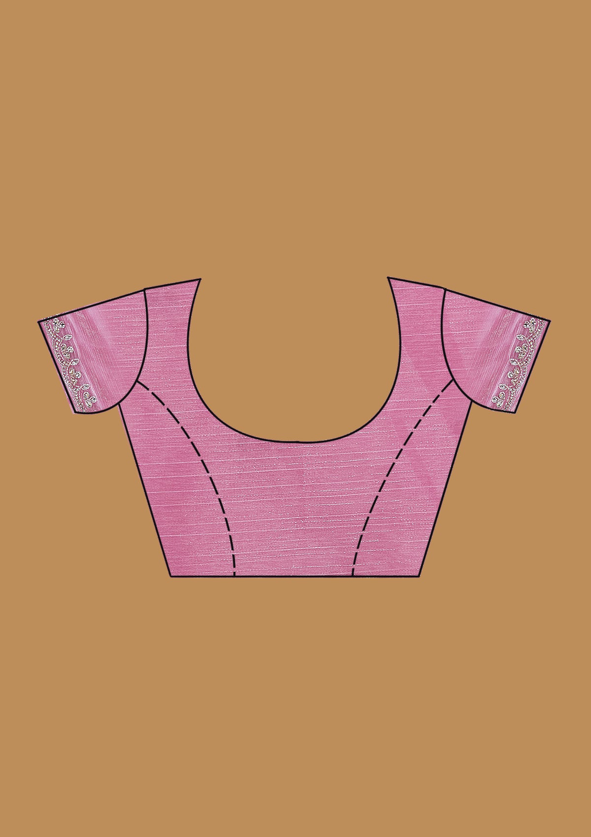 Baby Pink Saree in Tissue fabric. The Saree is elevated with Cutdana embroidery. It comes with an Unstitched blouse. Comes with the Koskii promise of premium quality.