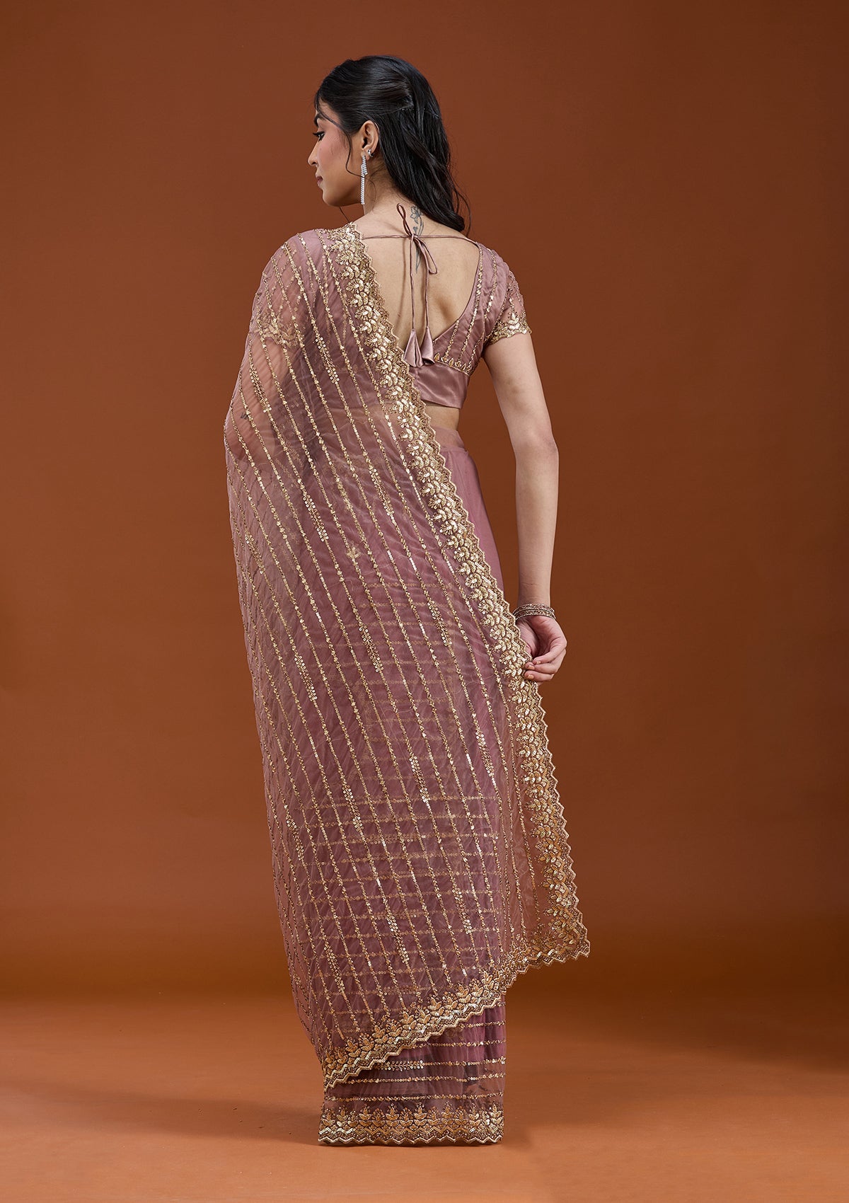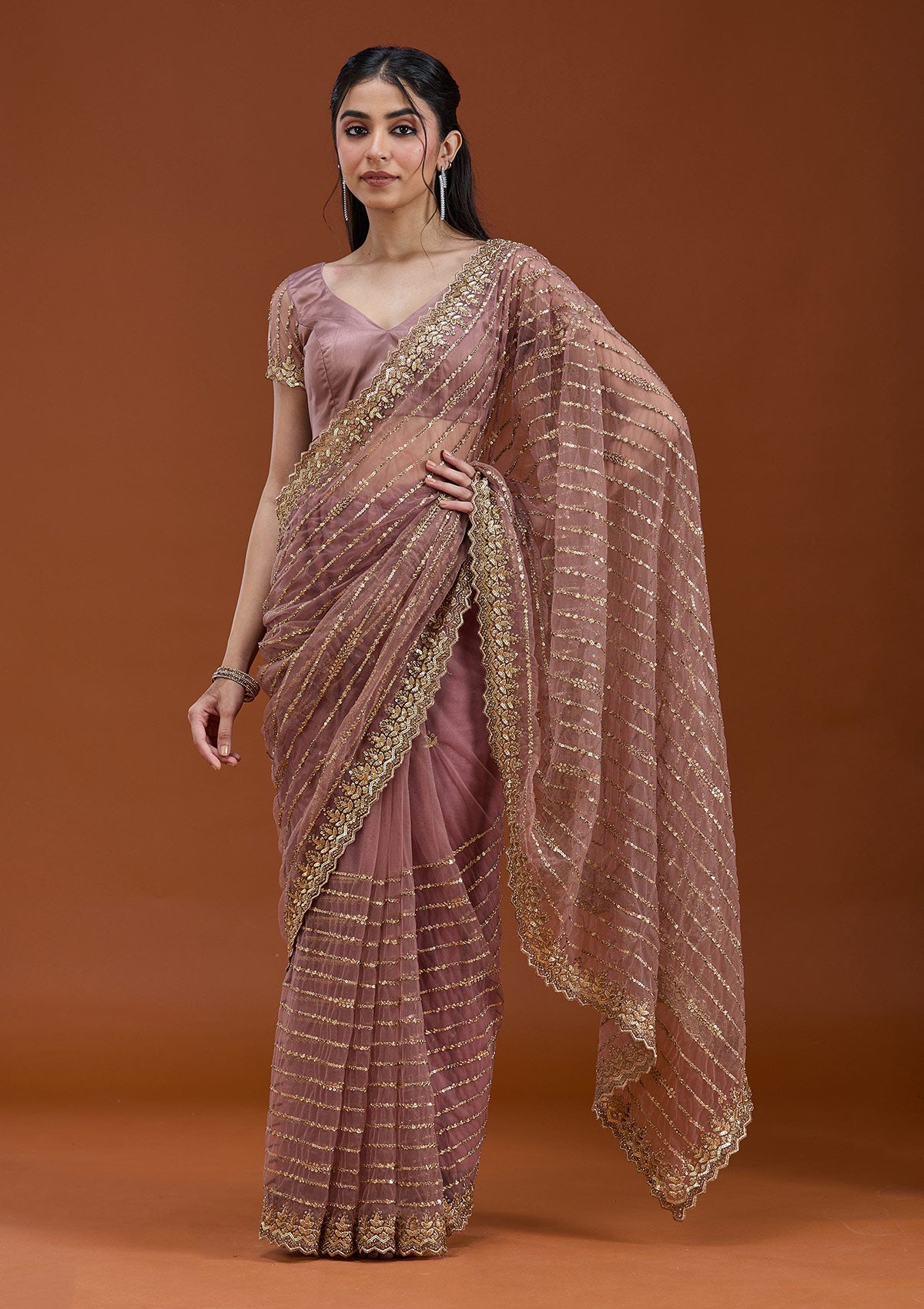 Onion Pink Saree in Net fabric. The Saree is elevated with Sequins embroidery. It comes with an Unstitched blouse. Comes with the Koskii promise of premium quality.