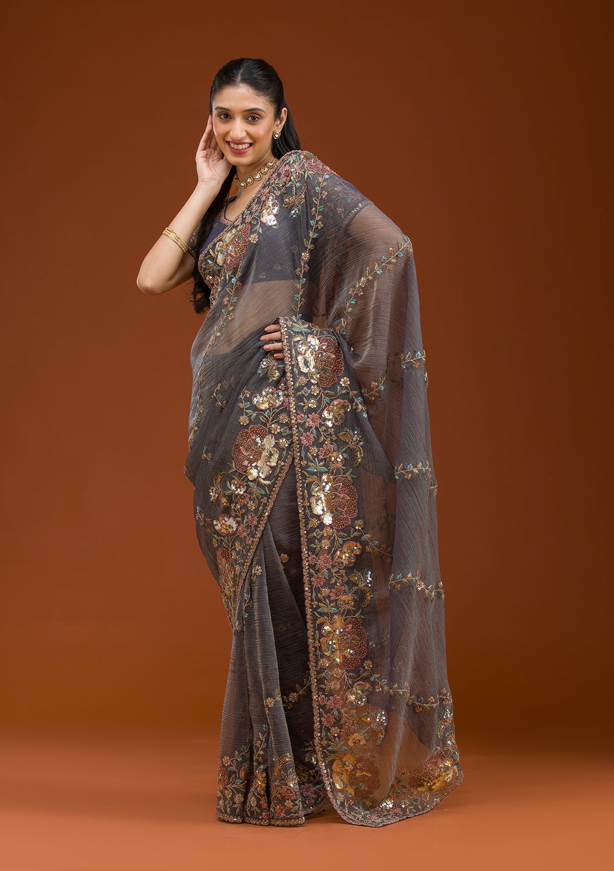 Purple Sequins Tissue Saree