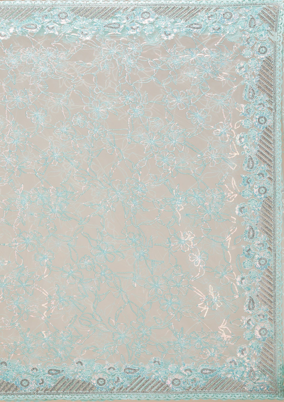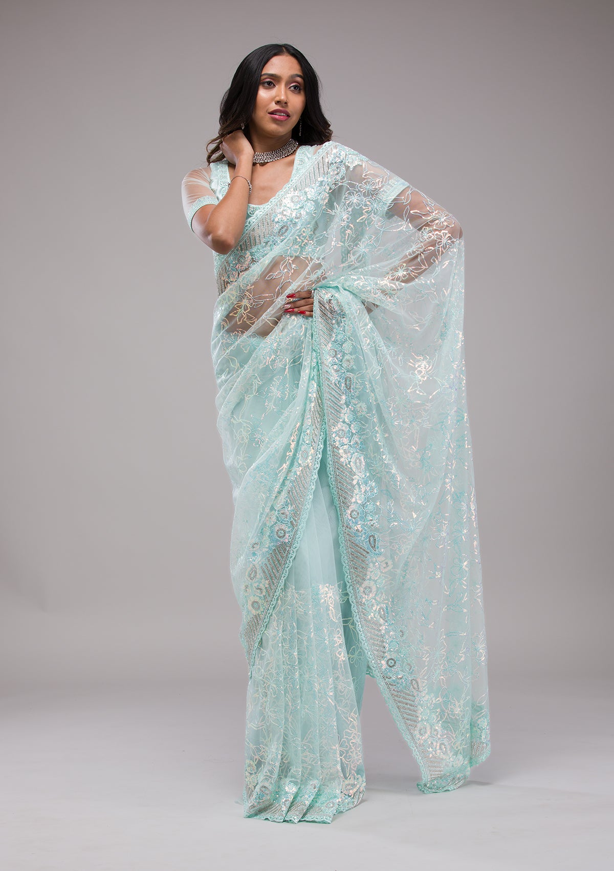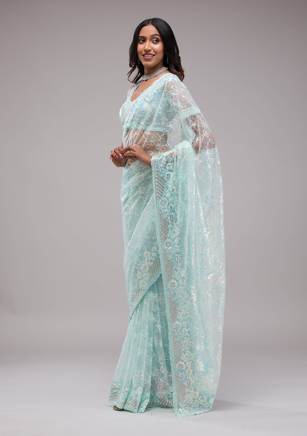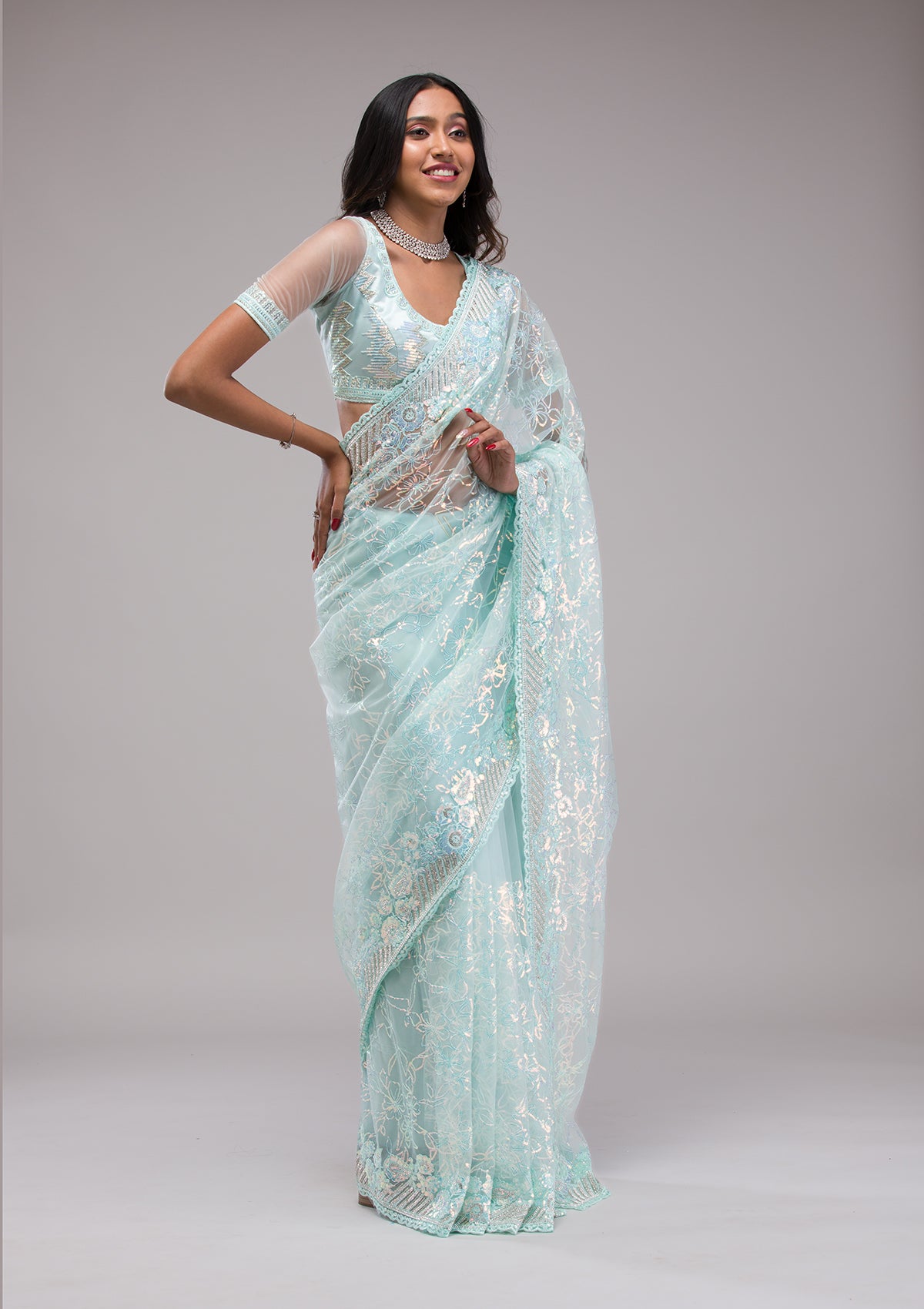 Sky Blue Sequins Net Saree