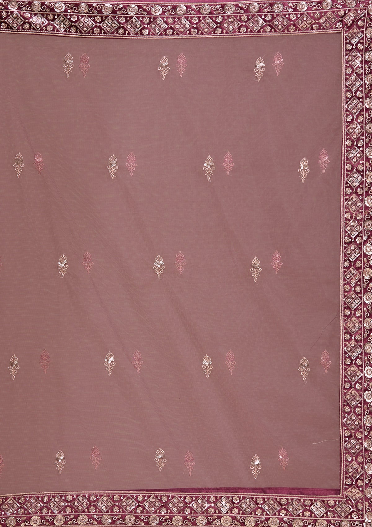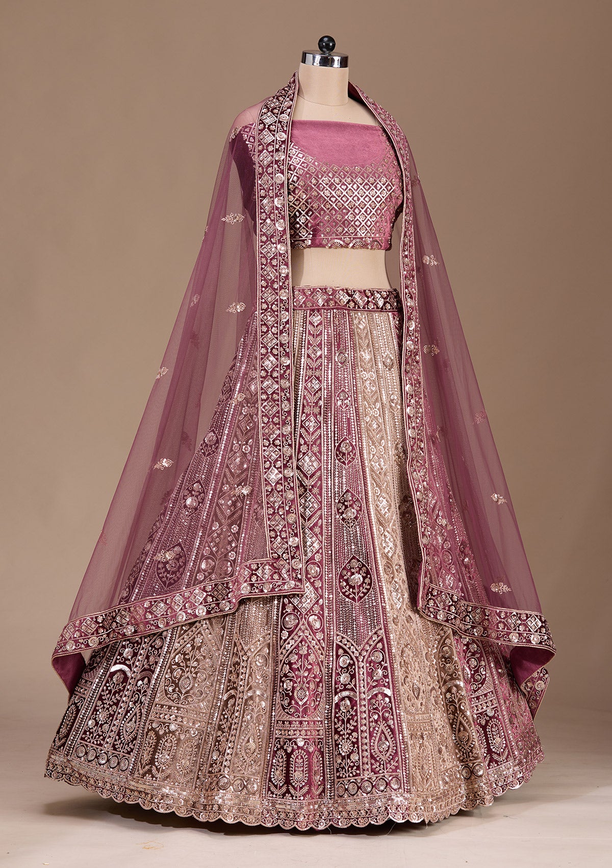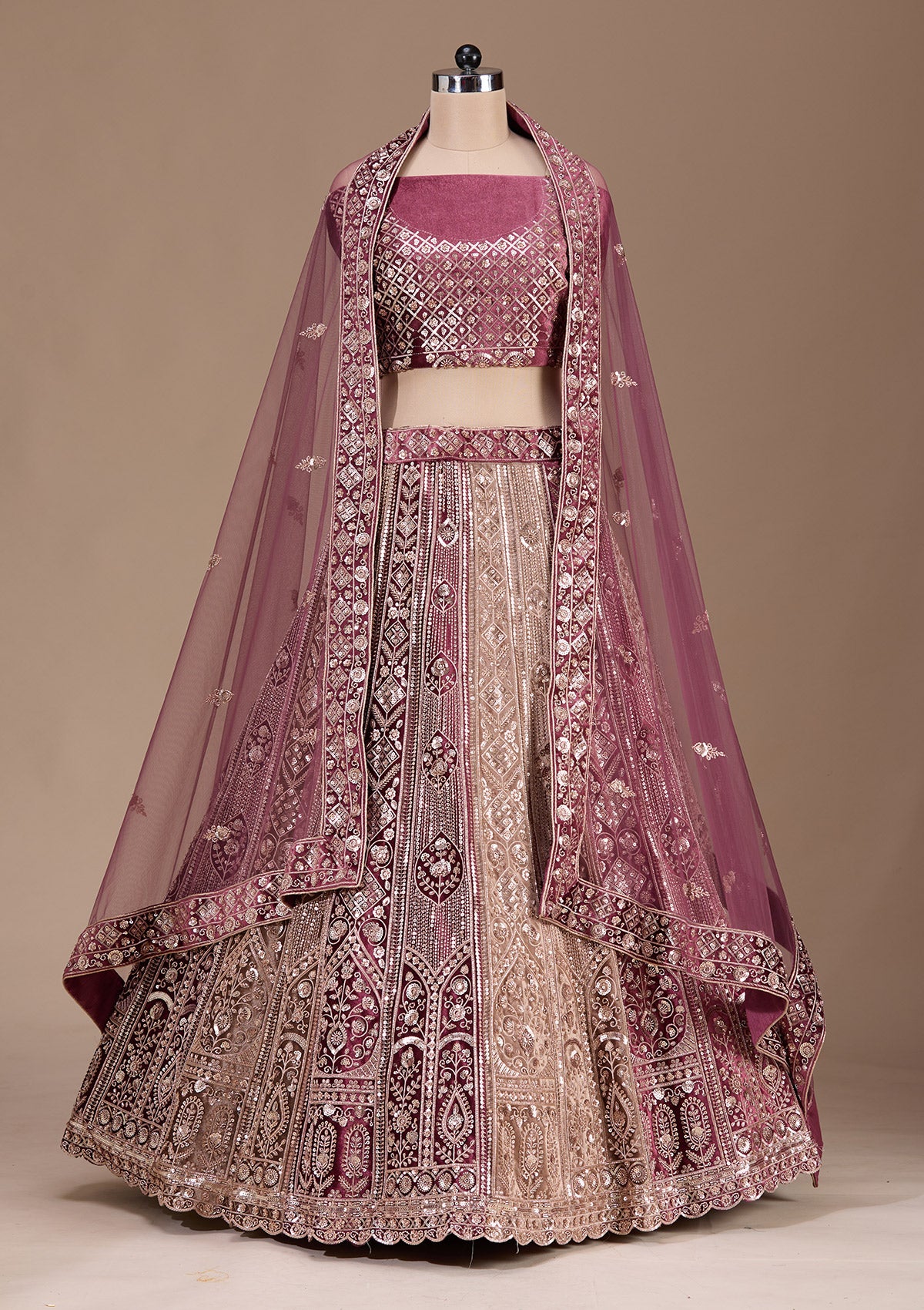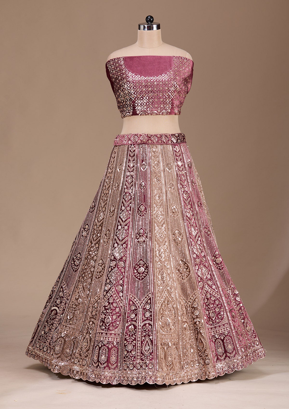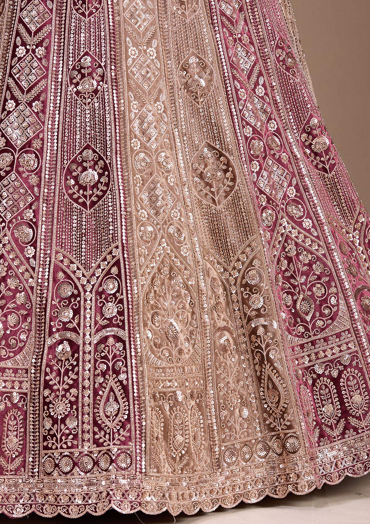 Wine Sequins Velvet Semi-Stitched Lehenga