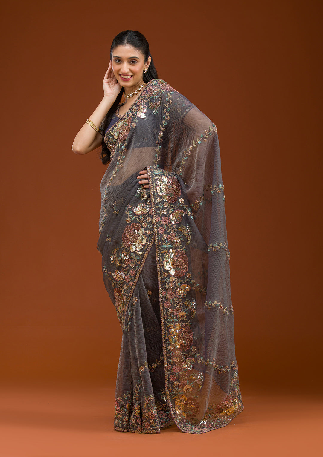 | Purple Sequins Tissue Saree | ₹ 2,392 | |