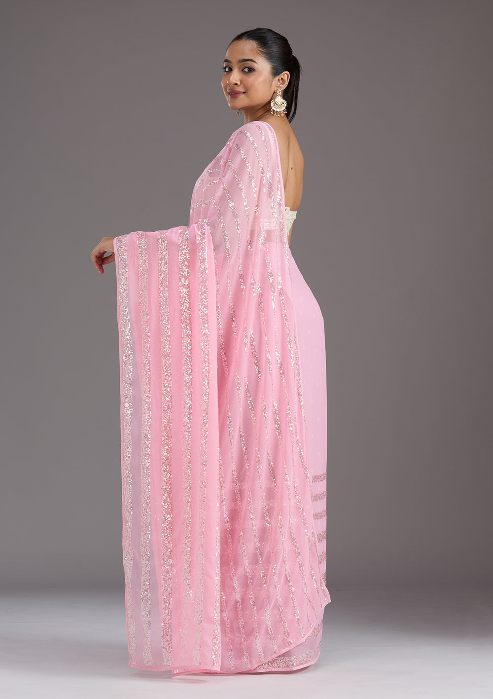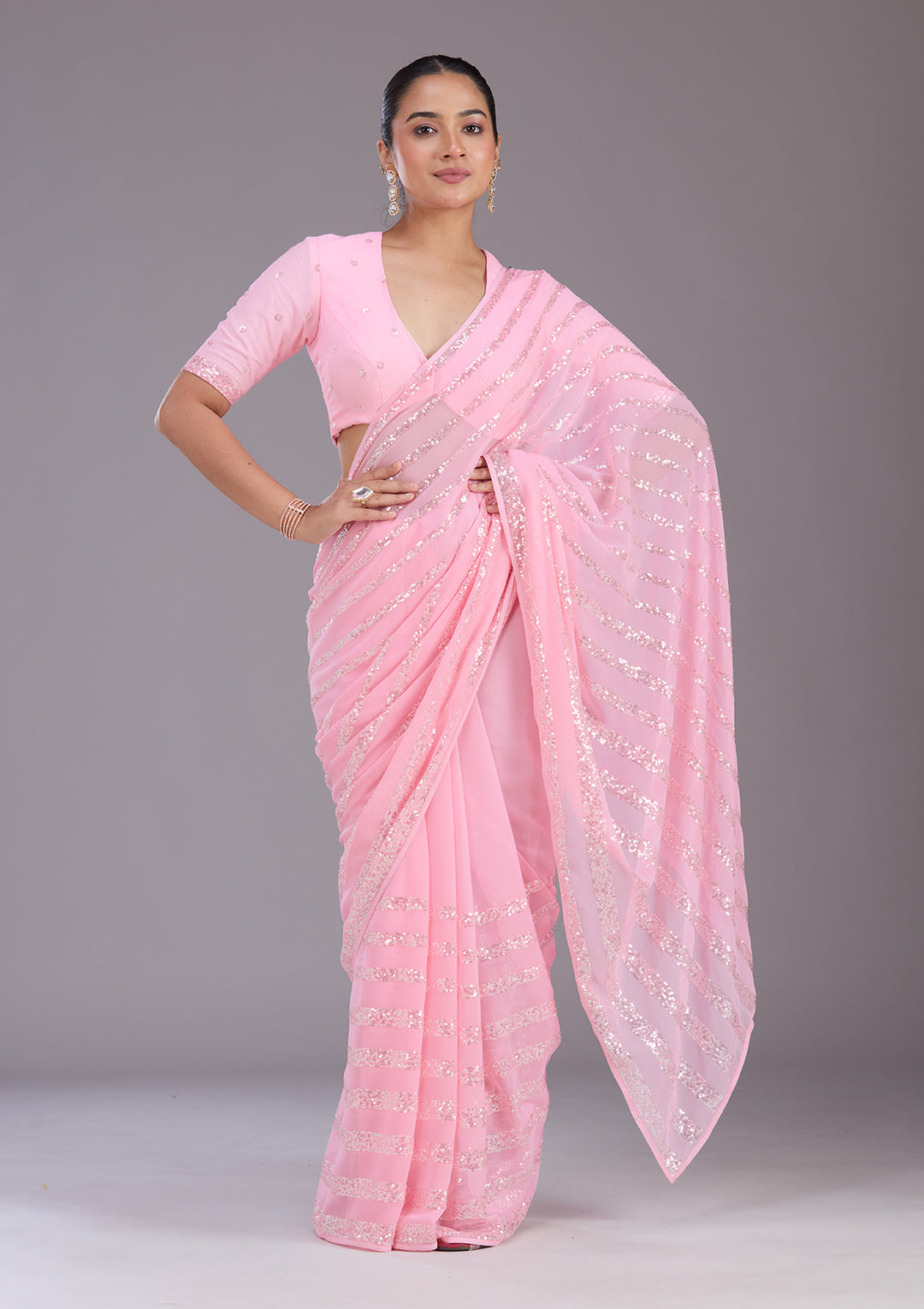 | Baby Pink Cutdana Tissue Saree | ₹ 3,493 | |