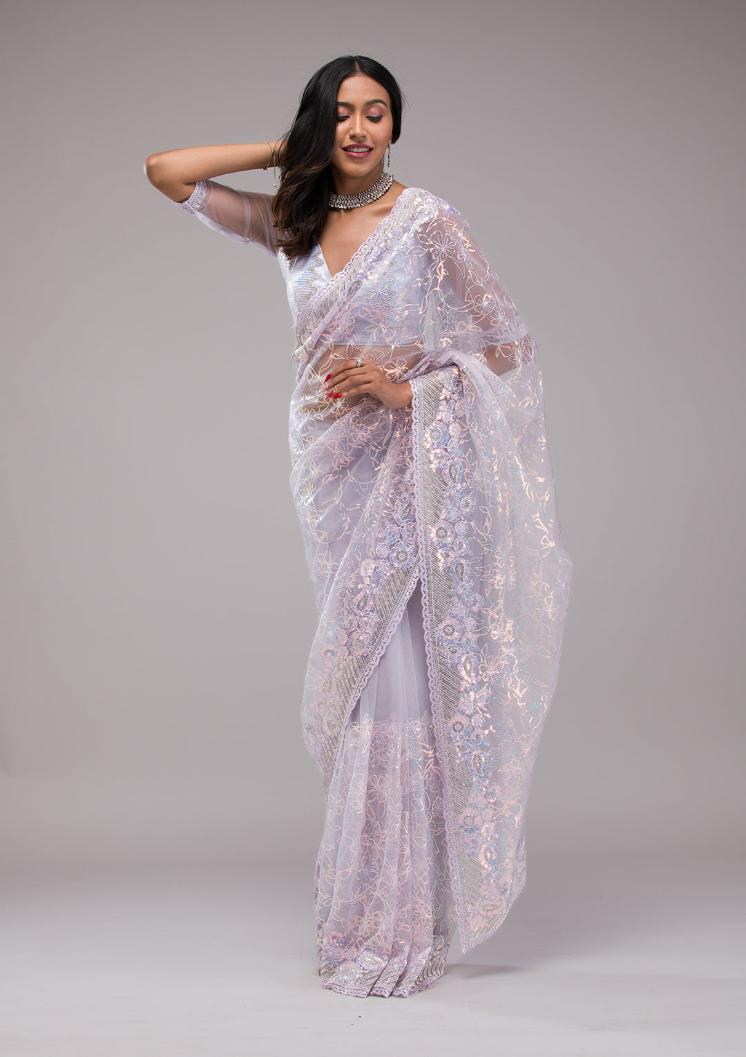 | Lavender Sequins Organza Saree | ₹ 3,493 | |