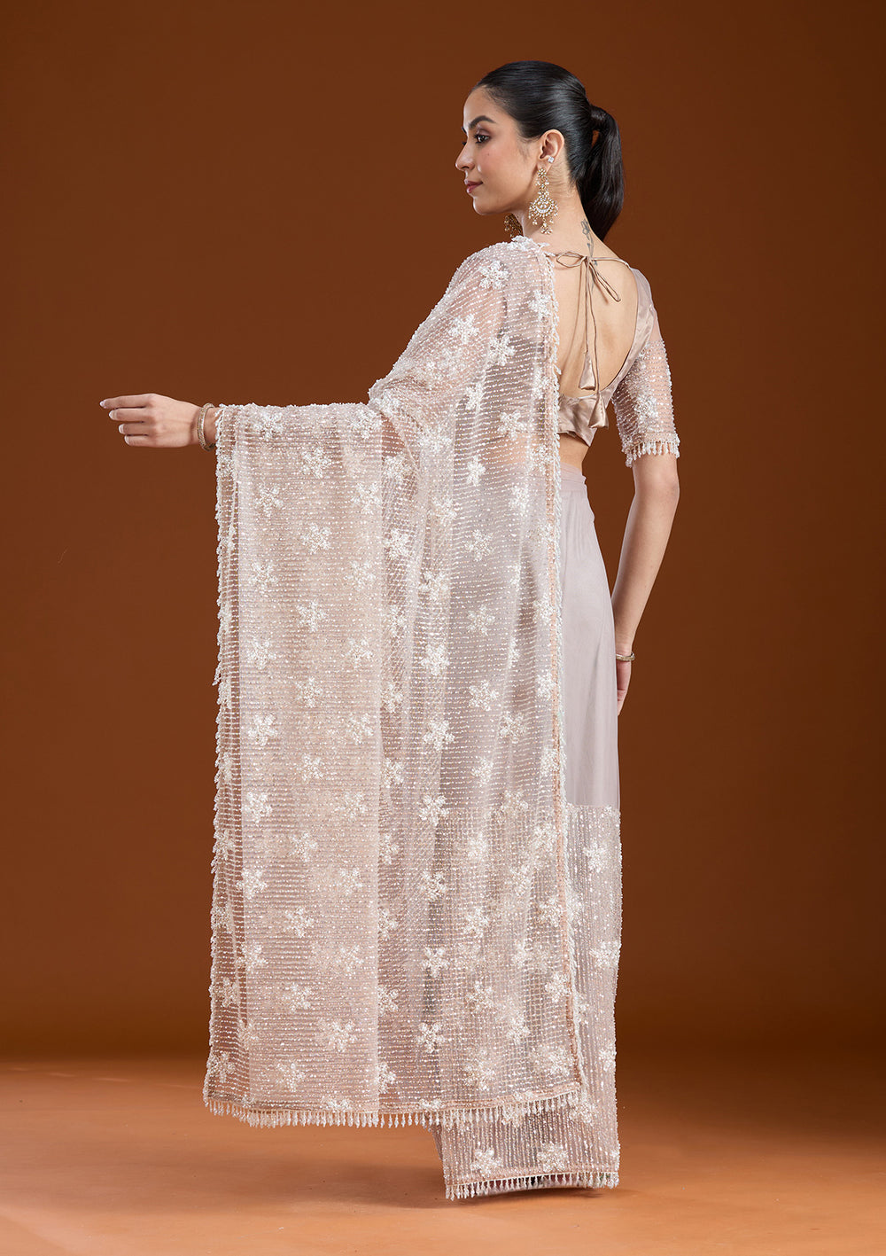 | Beige Pearlwork Tissue Saree | ₹ 6,792 | |