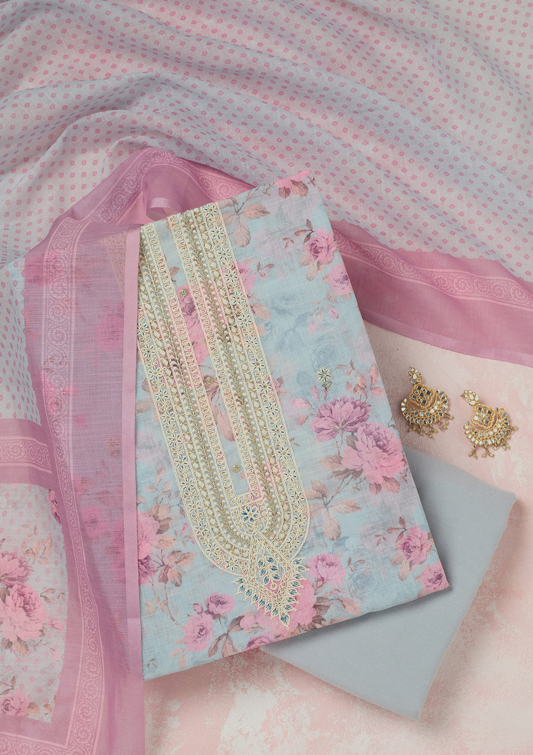 | Sky Blue Zariwork (Gold) Cotton Unstitched Salwar Suit | ₹ 1,992 | |