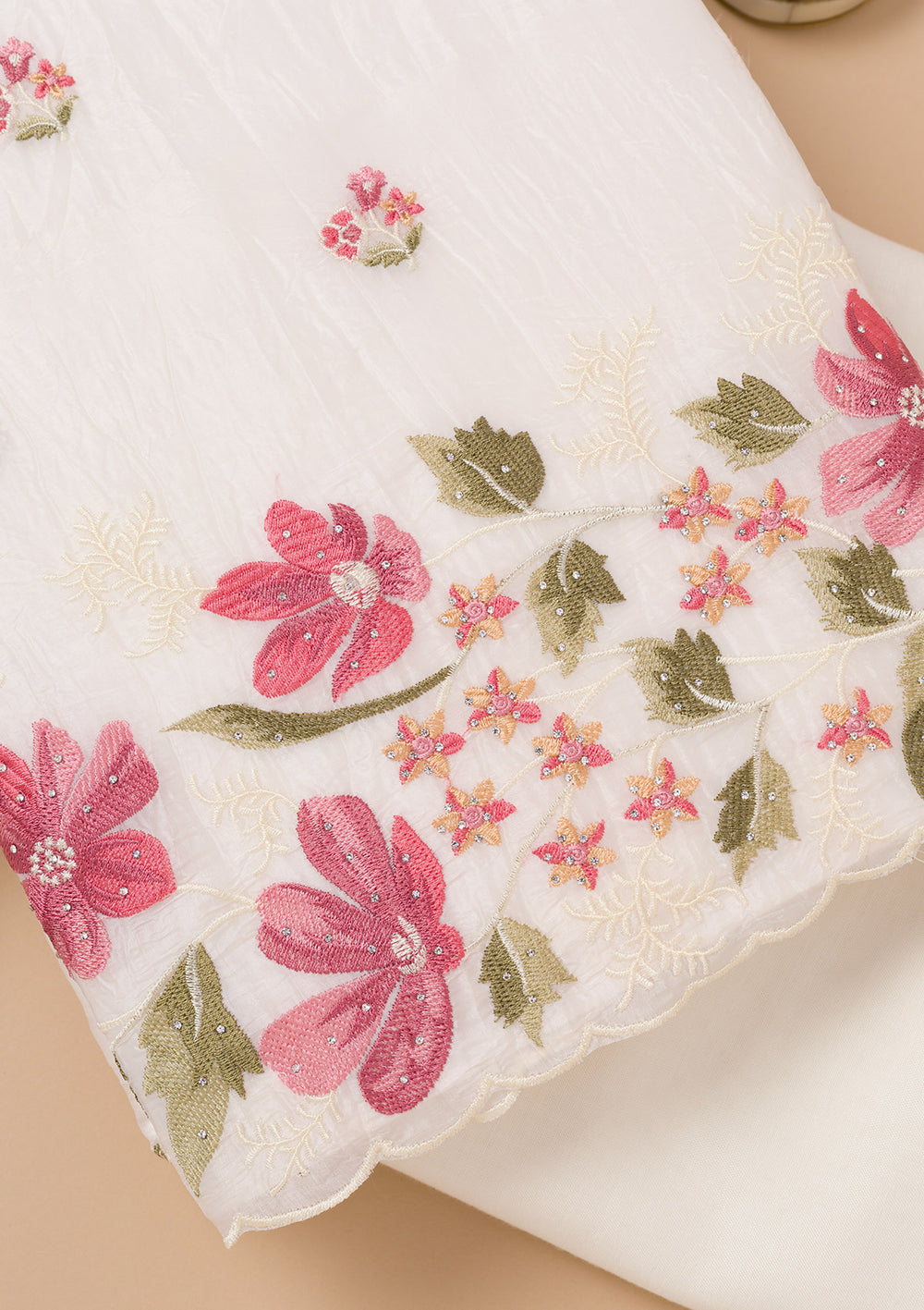 | Off White Threadwork Organza Unstitched Salwar Suit | ₹ 3,192 | |