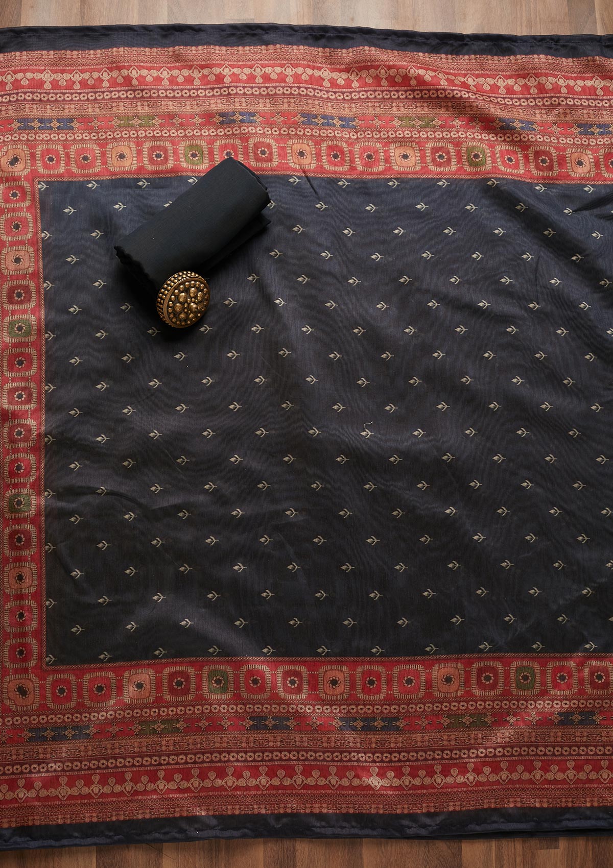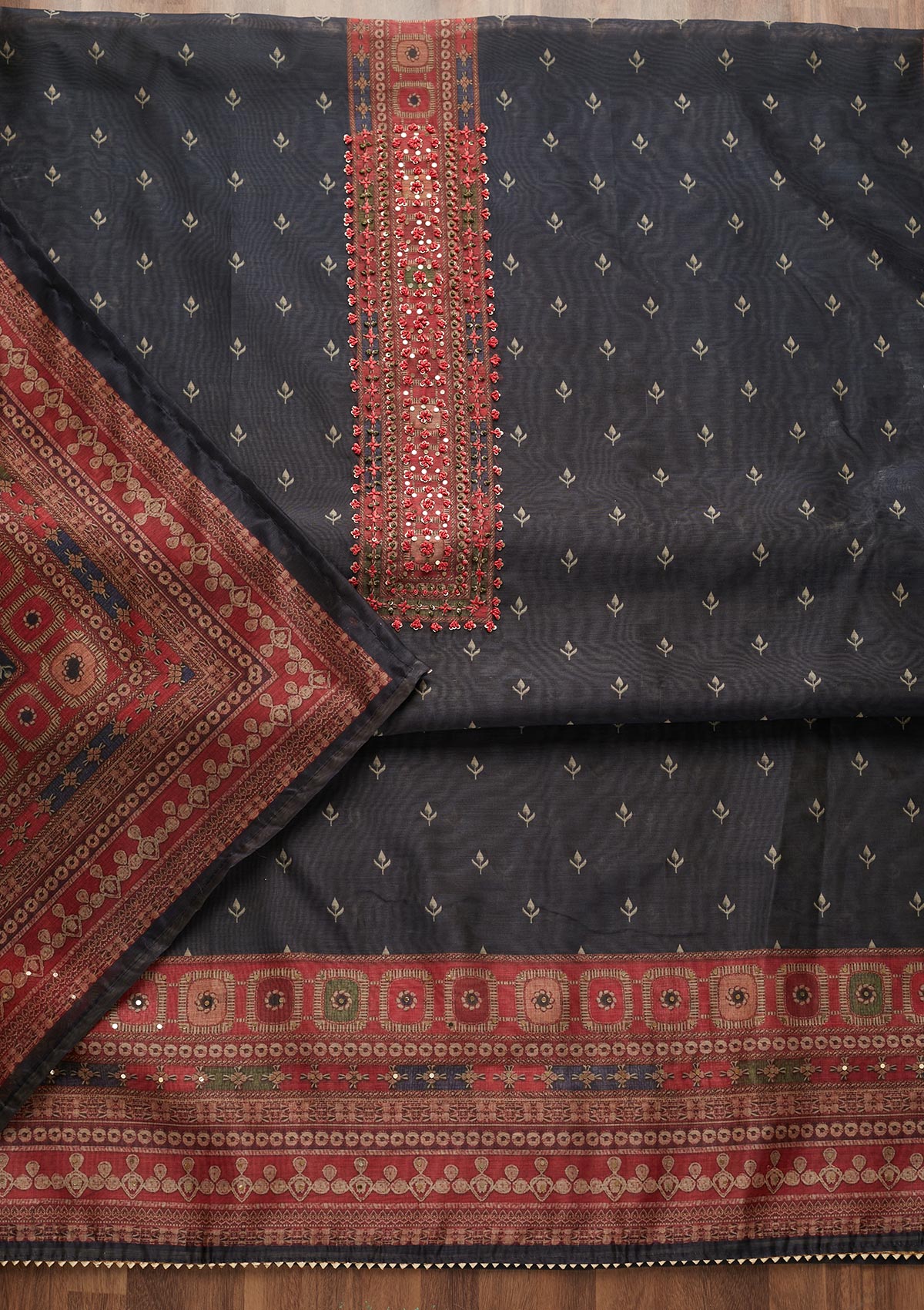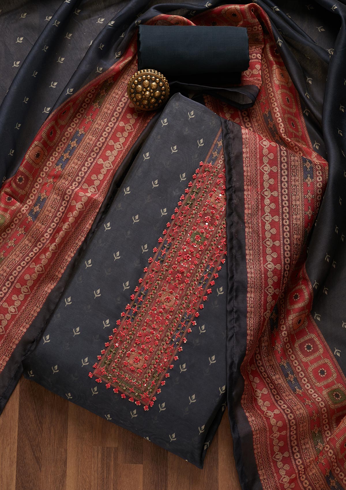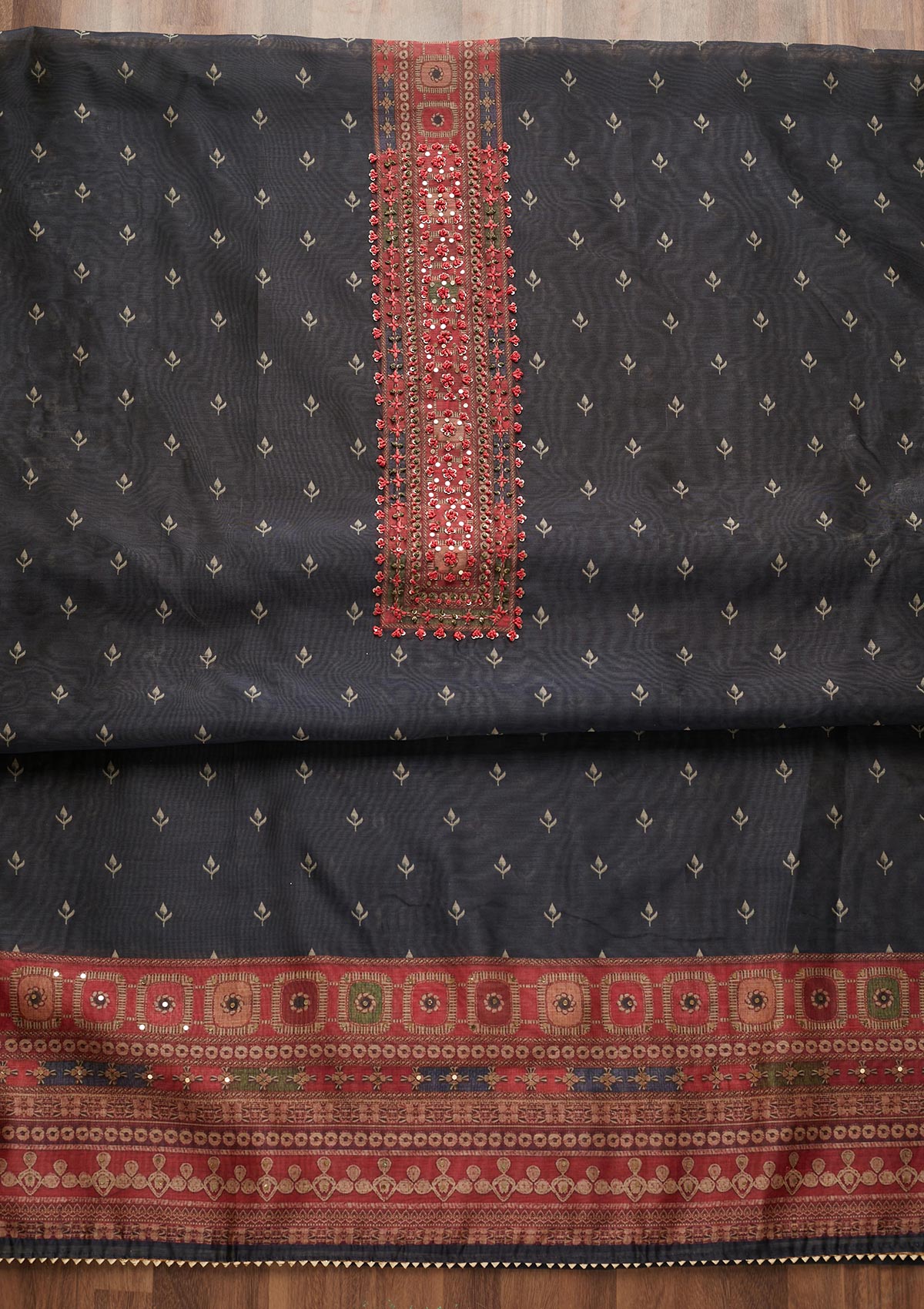 Black Threadwork Chanderi Unstitched Salwar Suit
