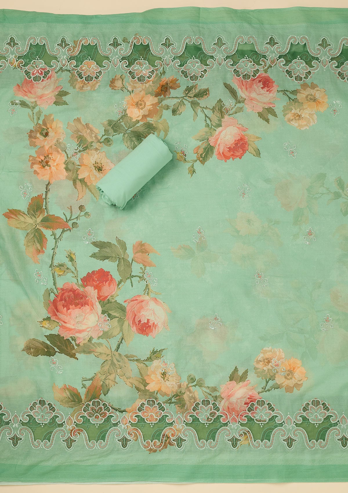 Sea Green Threadwork Cotton Unstitched Salwar Suit