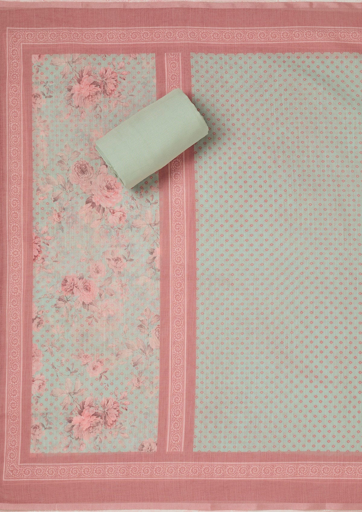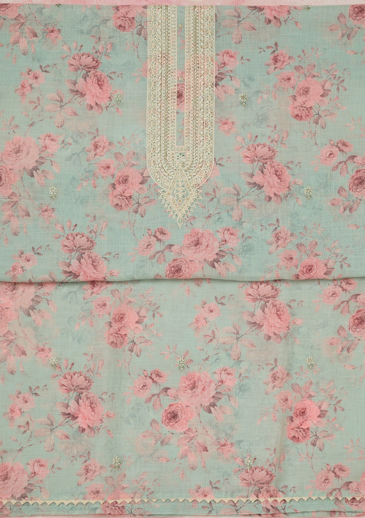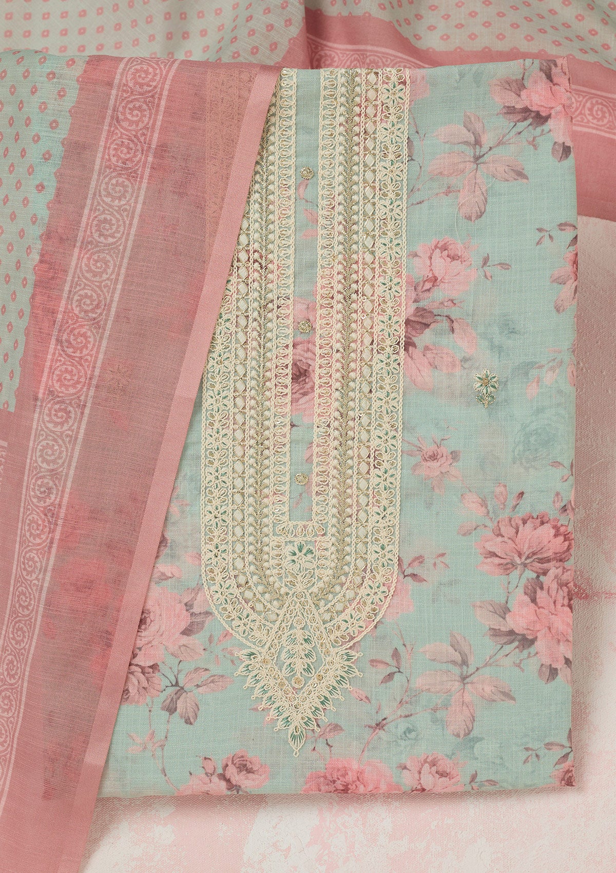 Sea Green Threadwork Linen Unstitched Salwar Suit