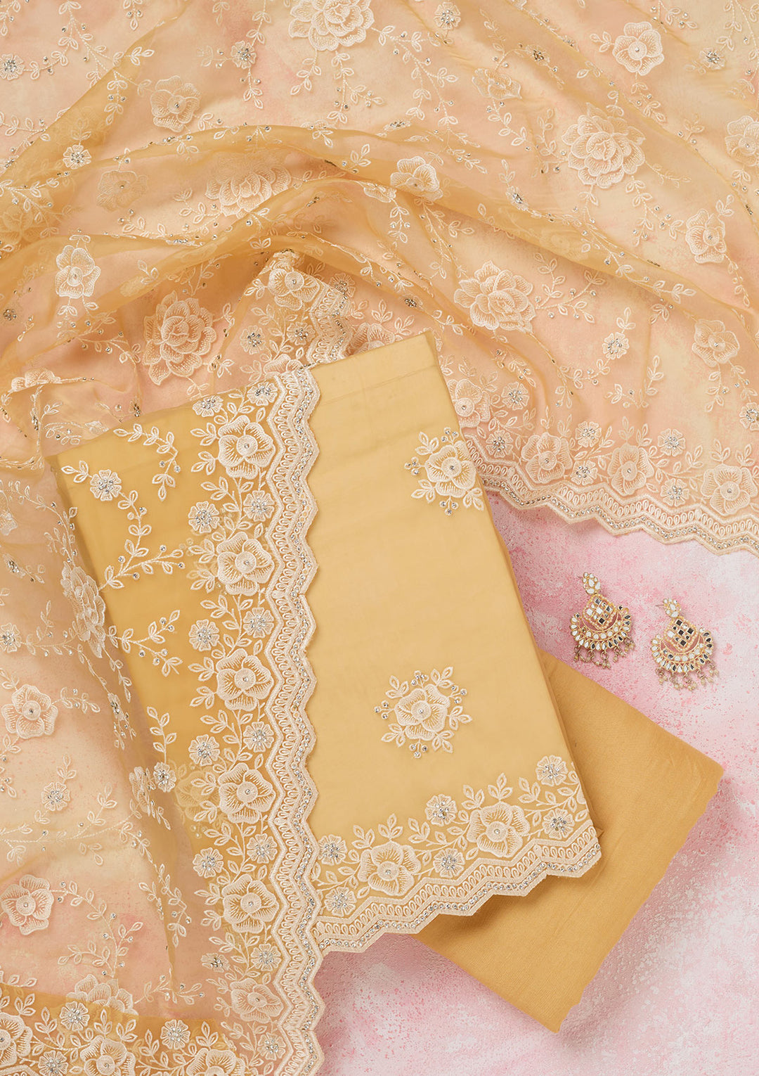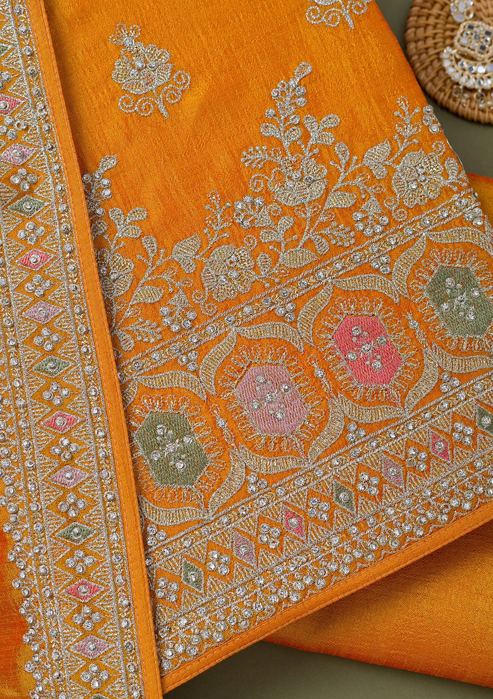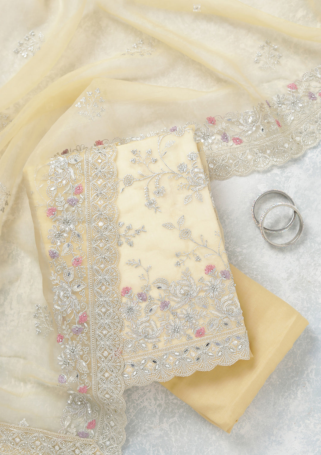 | Yellow Threadwork Tissue Unstitched Salwar Suit | ₹ 5,992 | |
