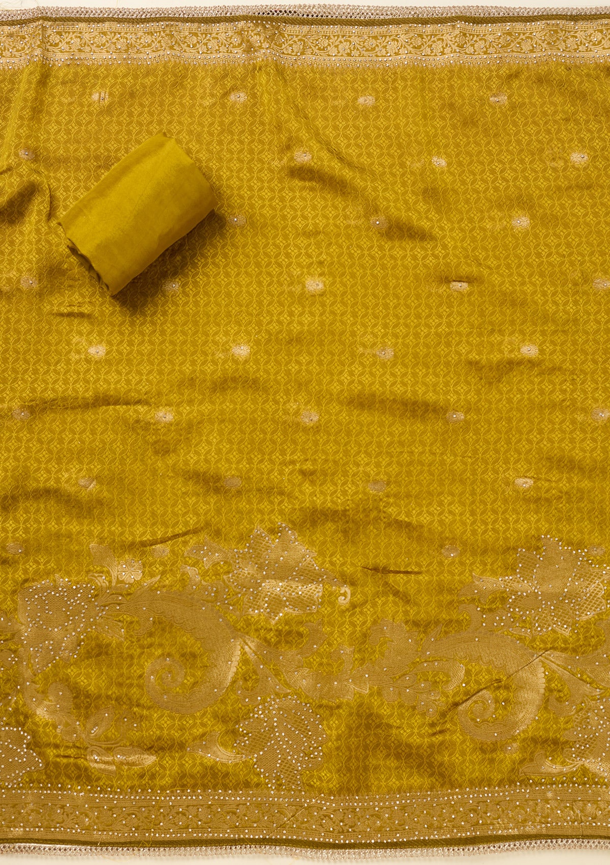 Mustard Zariwork (Gold) Dola Silk Unstitched Salwar Suit