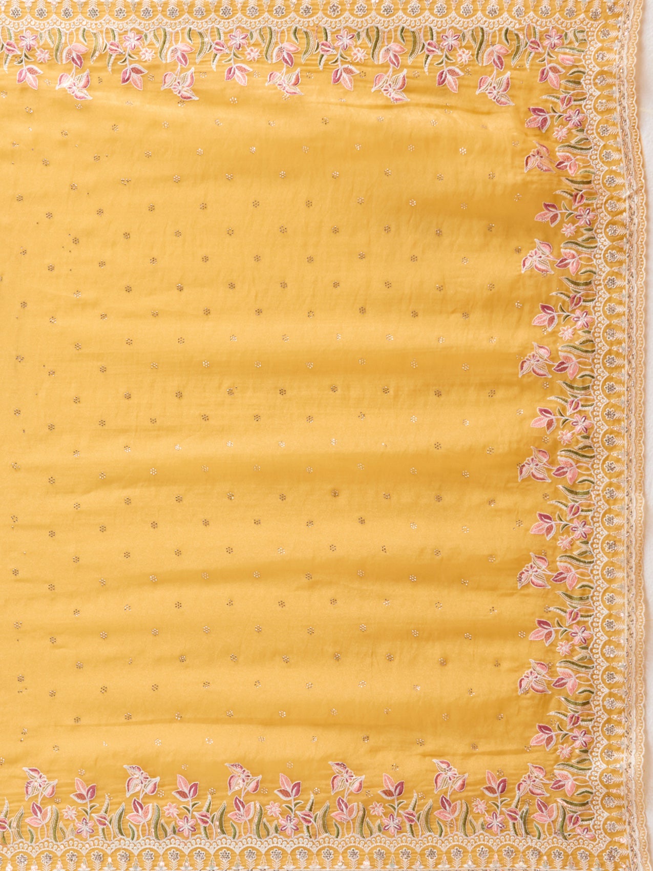 Yellow Saree in Chiffon fabric The Saree is elevated with Threadwork embroidery It comes with an Unstitched blouse Comes with the Koskii promise of premium quality.