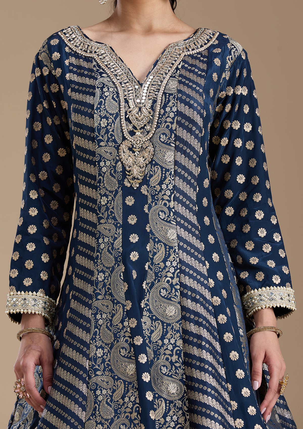 Navy Blue Zariwork Brocade Readymade Salwar Suit