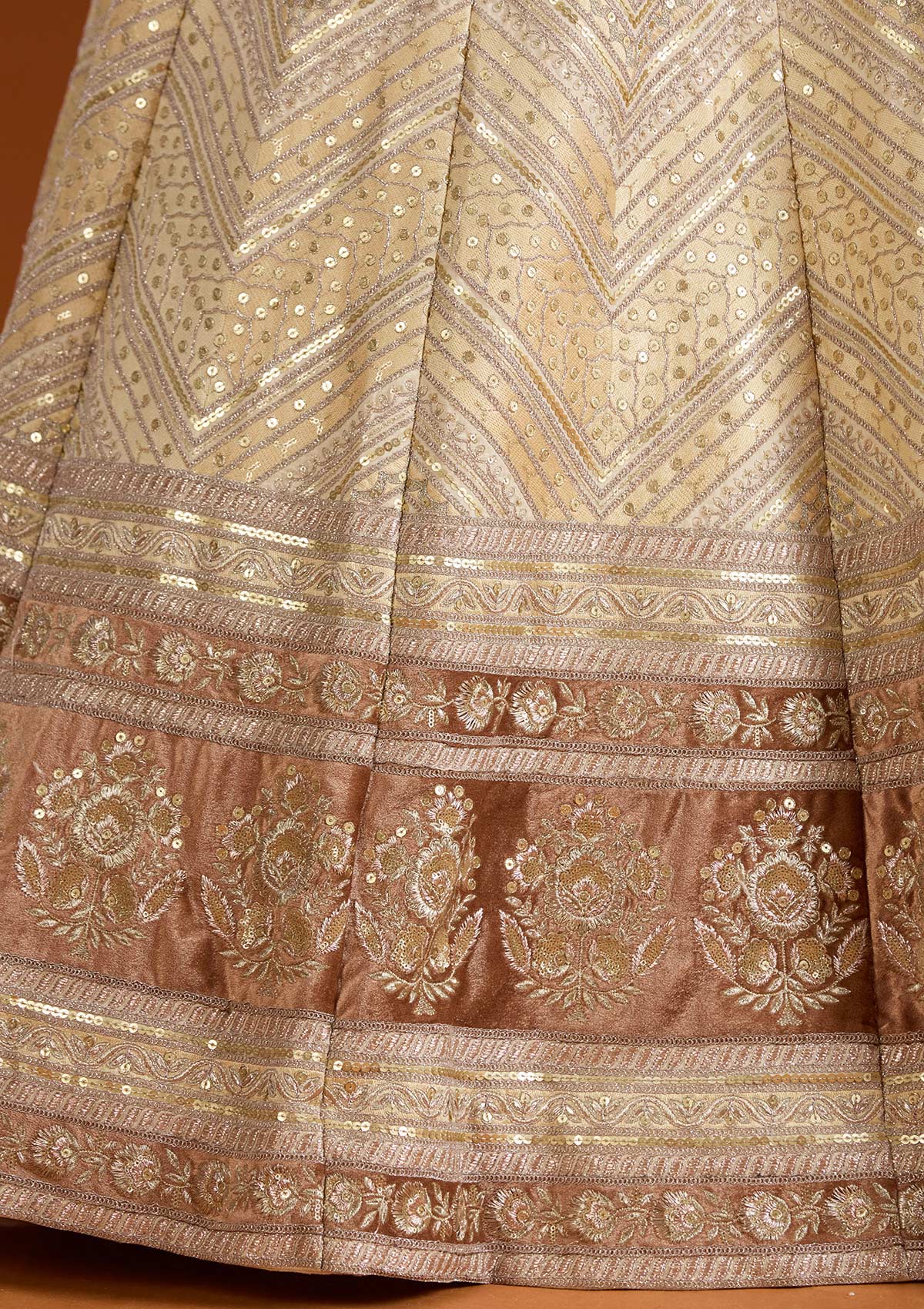 Beige Zariwork Net Readymade Lehenga