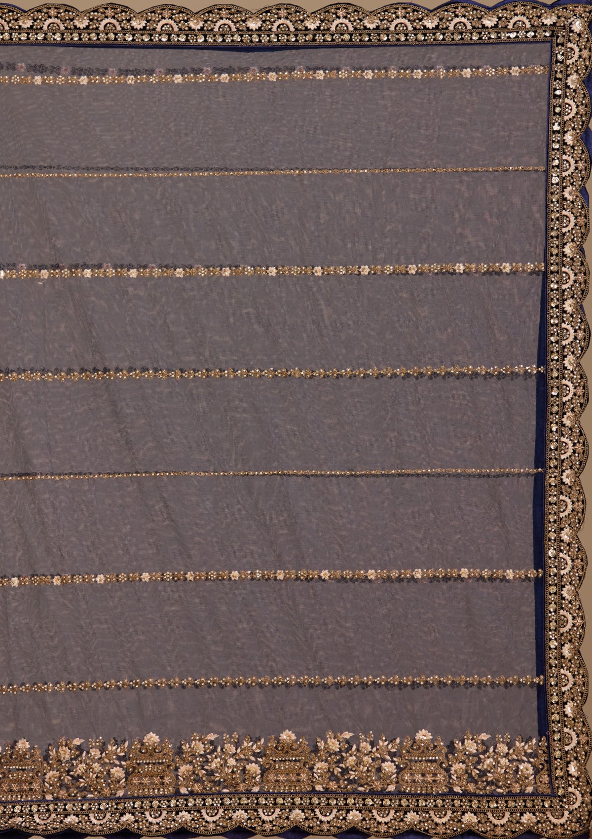 Blue Readymade Lehenga in Velvet fabric. The Lehenga is embellished with Cording embroidery. Accompanied with an Readymade blouse and dupatta. Comes with the Koskii promise of premium quality.