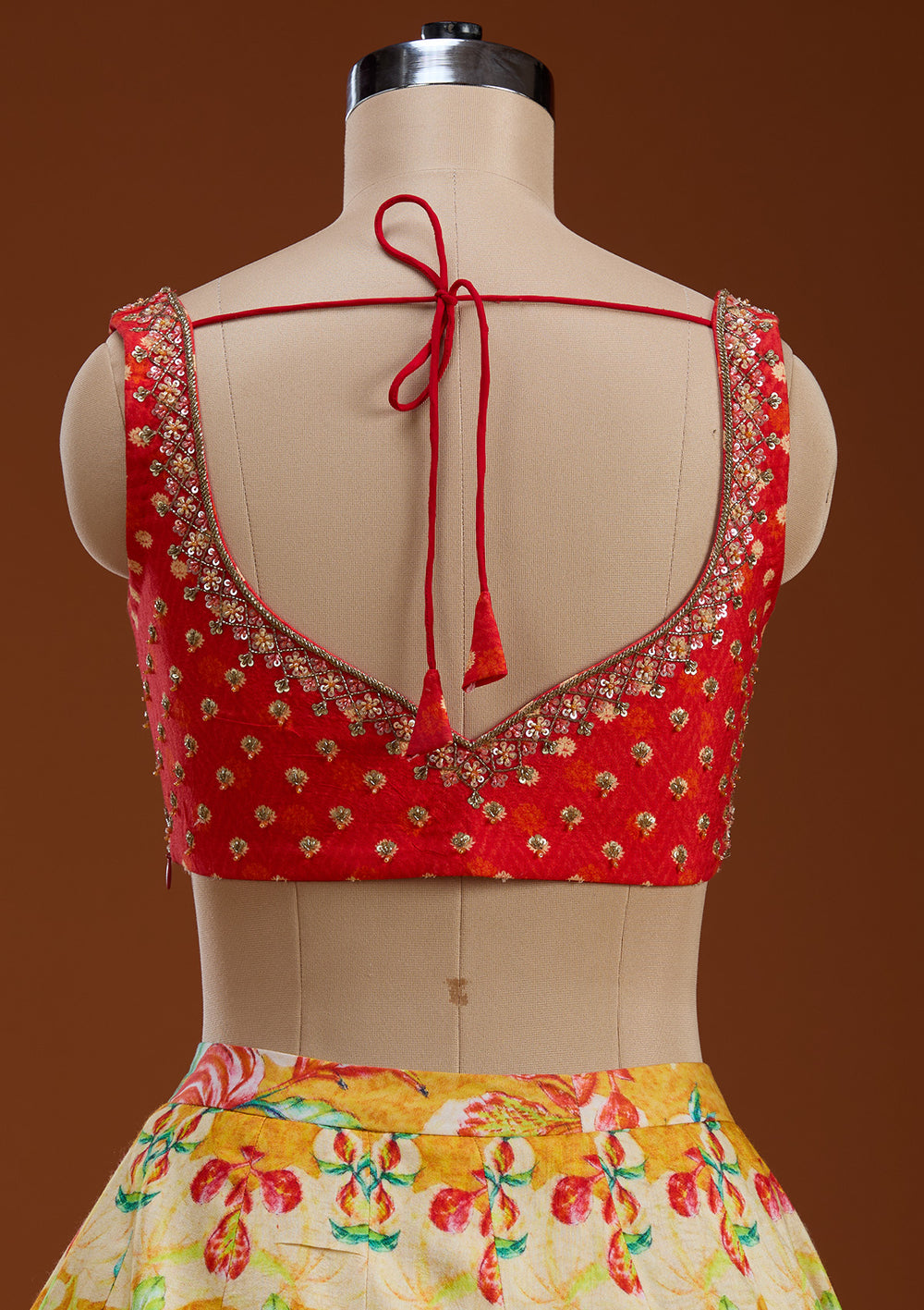 When a lehenga choli is a readymade, you see what you get in terms of the design, cut, color, and embroidery work. You will need to choose a size that fits you from the size chart. Buying a readymade ghagra choli makes sense if your measurements align with the norm. Aspects of ethnic wear, like the choli, must be fitted, or the entire ensemble looks messy. When you buy a readymade lehenga choli online, ensure that the style suits your body structure. For example, a leaf neckline might not suit all body shapes. Similarly, you may not be comfortable in a sleeveless choli but might want cap sleeves.
