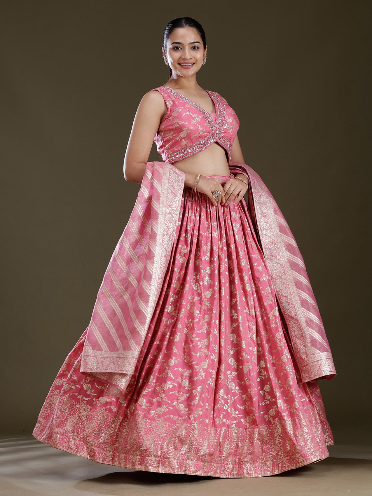 Onion Pink Sequins Soft Raw Silk Readymade Lehenga