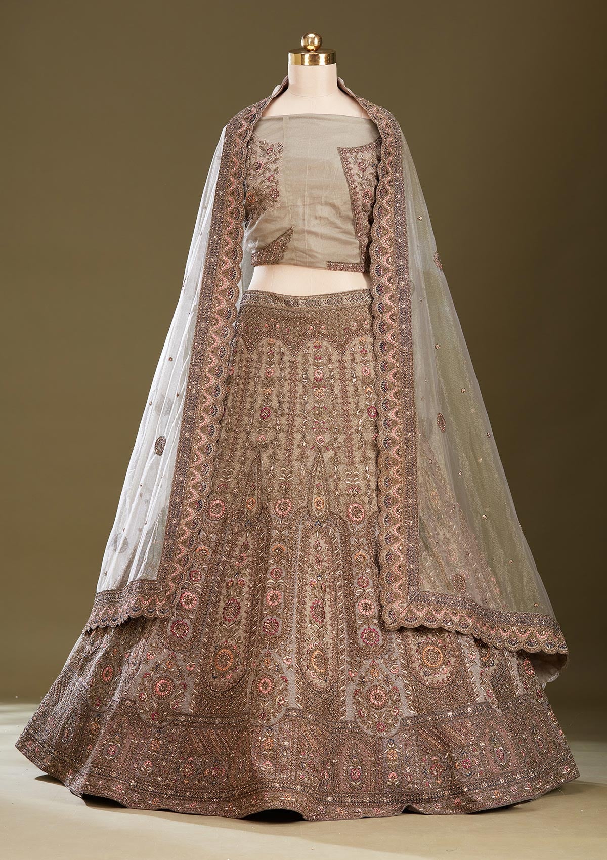 Mehendi Readymade Lehenga in Net fabric. The Lehenga is embellished with Cording embroidery. Accompanied with an Readymade blouse and dupatta. Comes with the Koskii promise of premium quality.