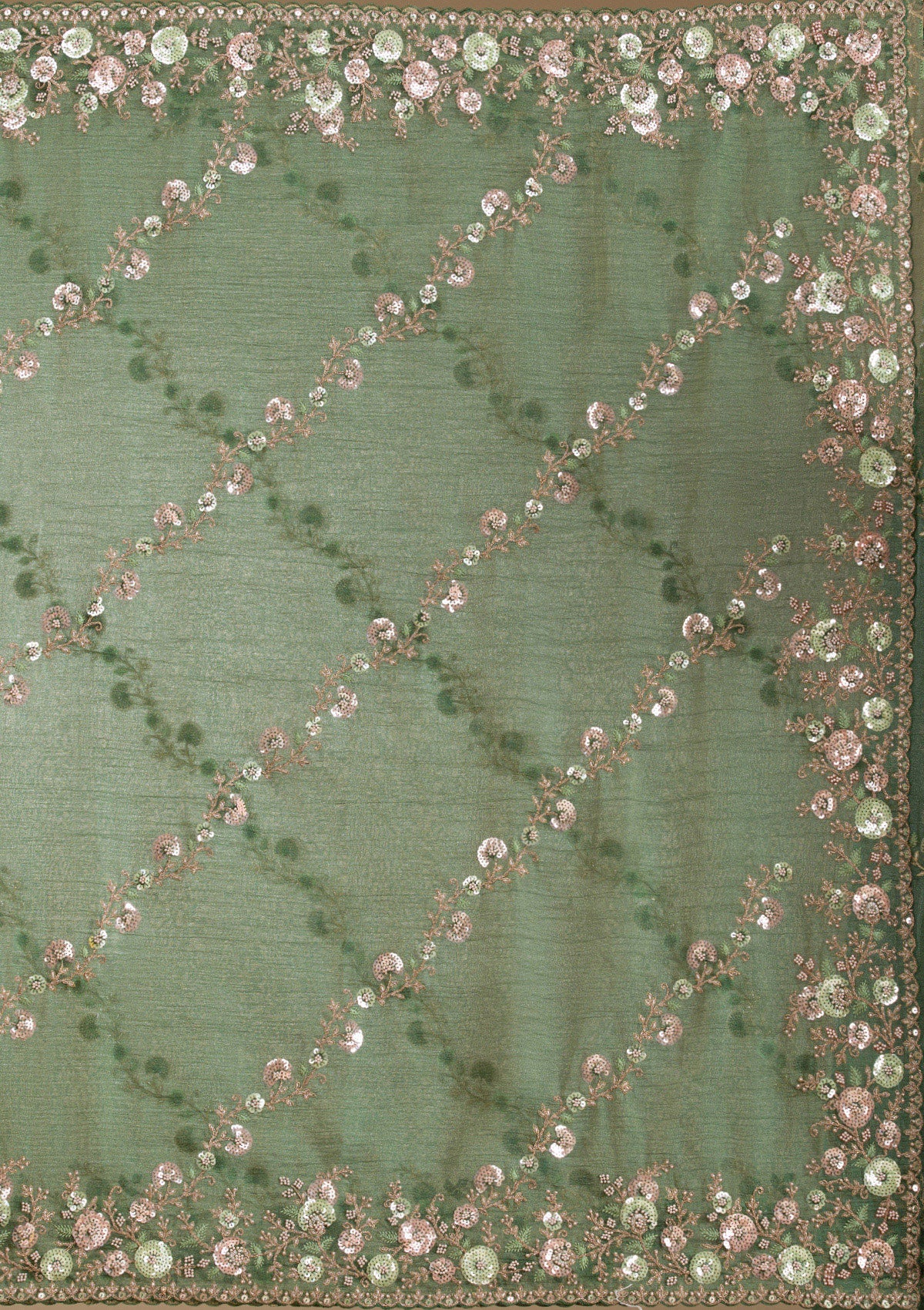 Bottle Green Sequins Tissue Saree