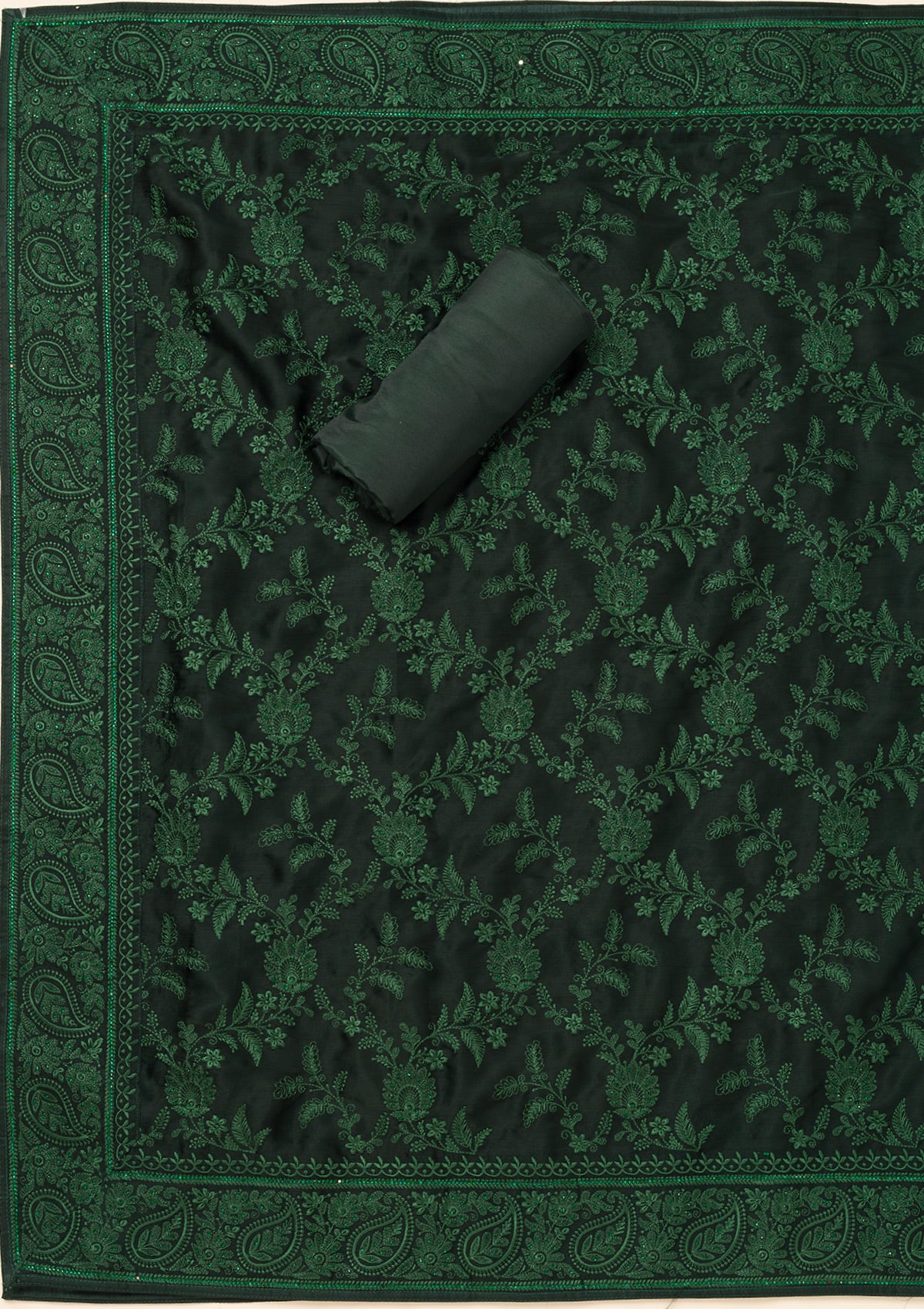 Bottle Green Swarovski Semi Crepe Unstitched Salwar Suit