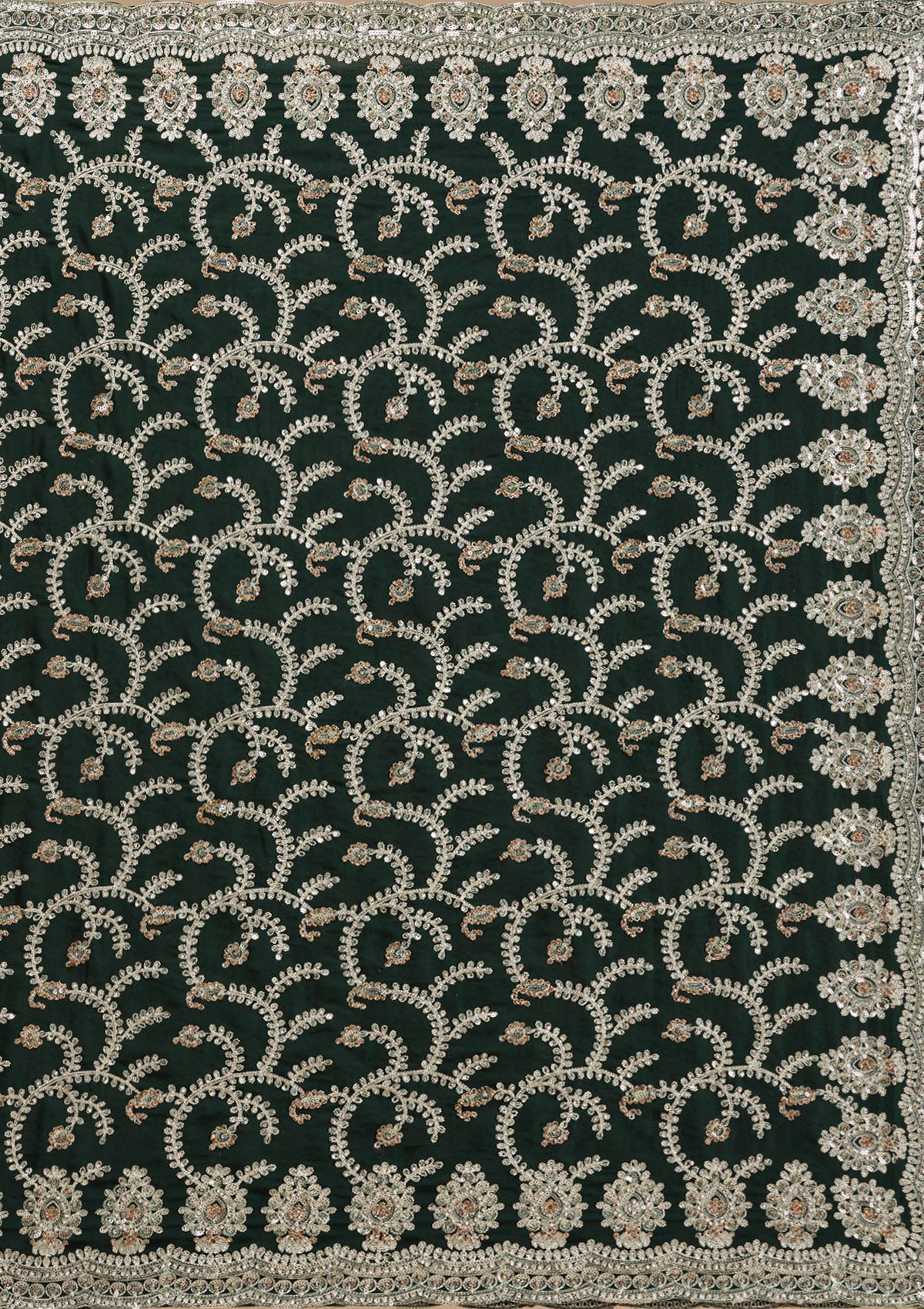 Bottle Green Threadwork Satin Saree