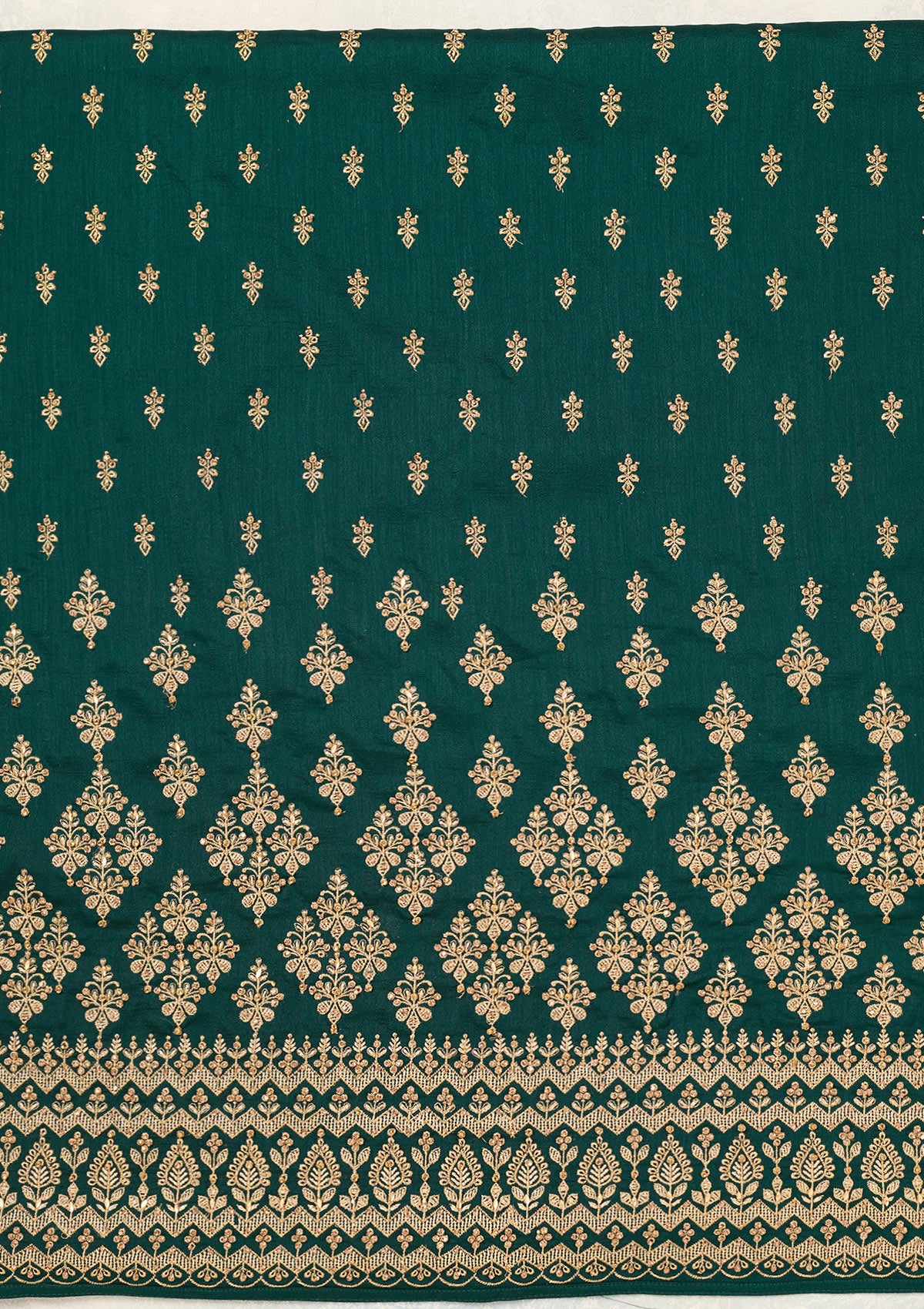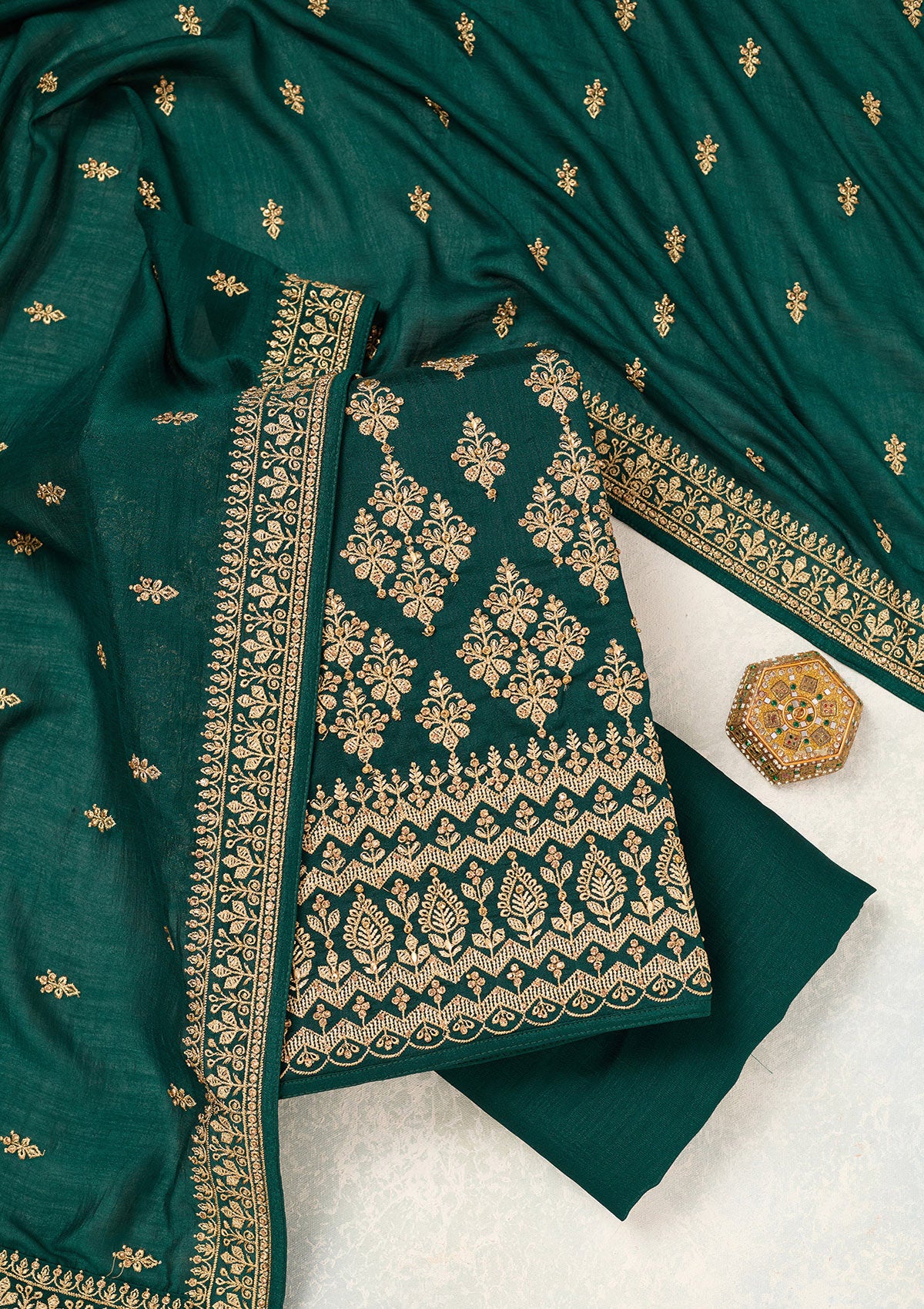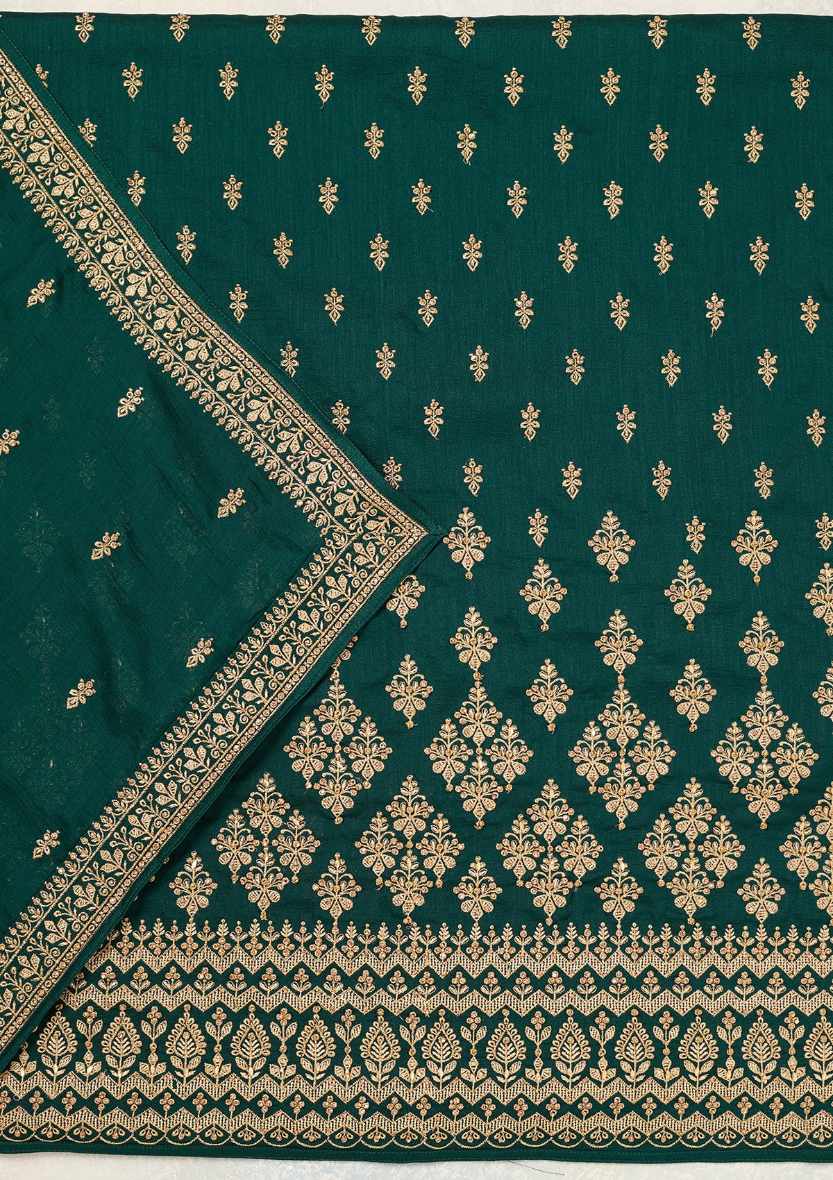 Bottle Green Zariwork (Gold) Soft Raw Silk Unstitched Salwar Suit
