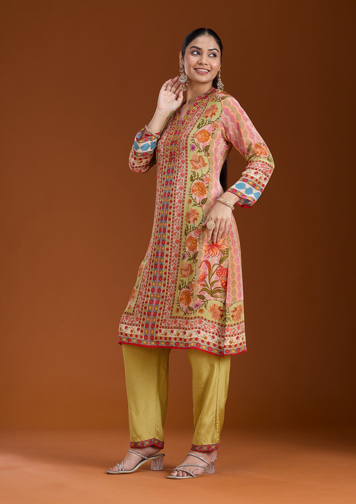 Green Salwar_RM in Crepe fabric. The Salwar_RM is embellished with Printed embroidery. Accompanied with a bottom and dupatta. Comes with the Koskii promise of premium quality.