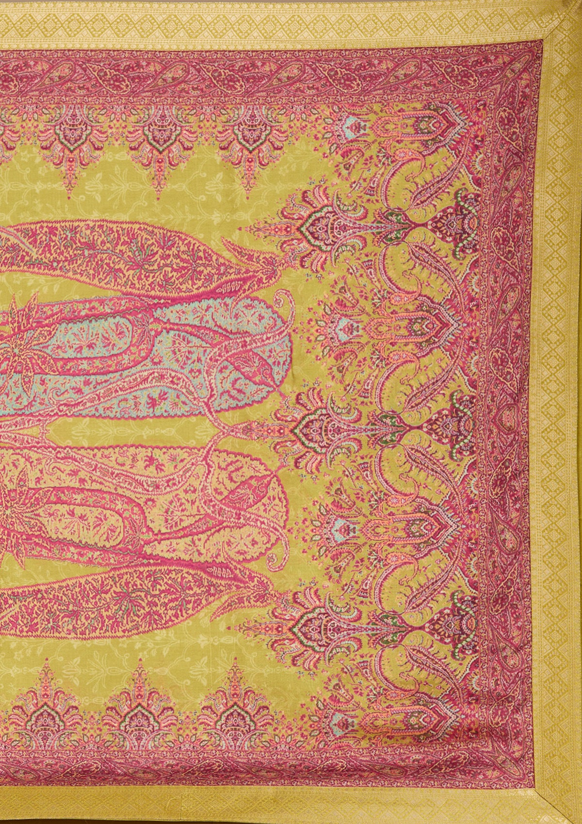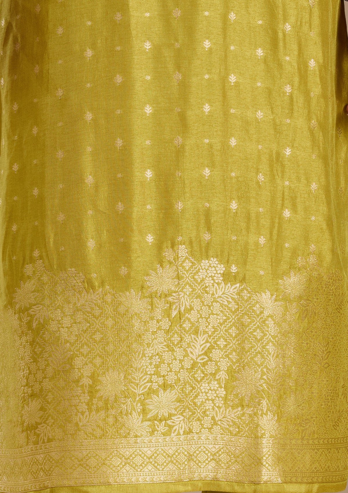 Mehandi Green Salwar Suit in Banarasi fabric. The Salwar Suit is embellished with Cording embroidery. Accompanied with a bottom and dupatta. Comes with the Koskii promise of premium quality.