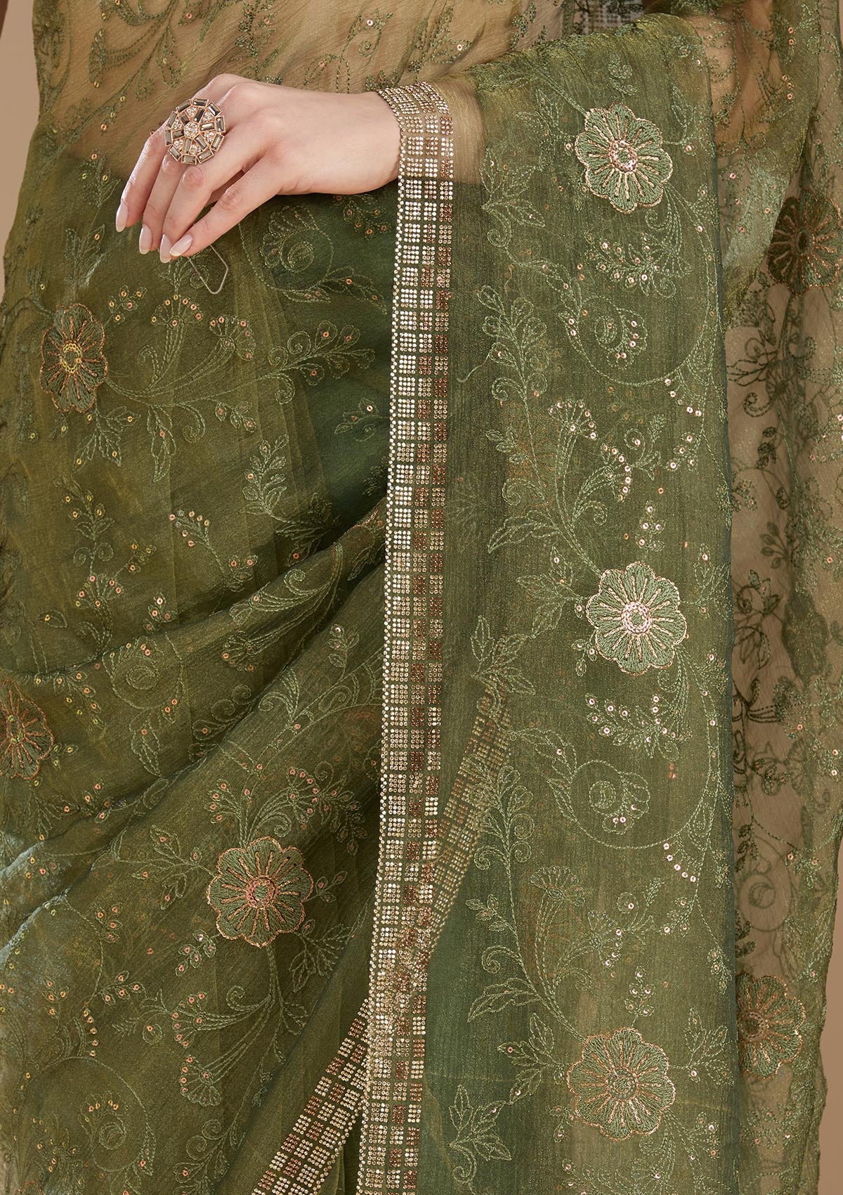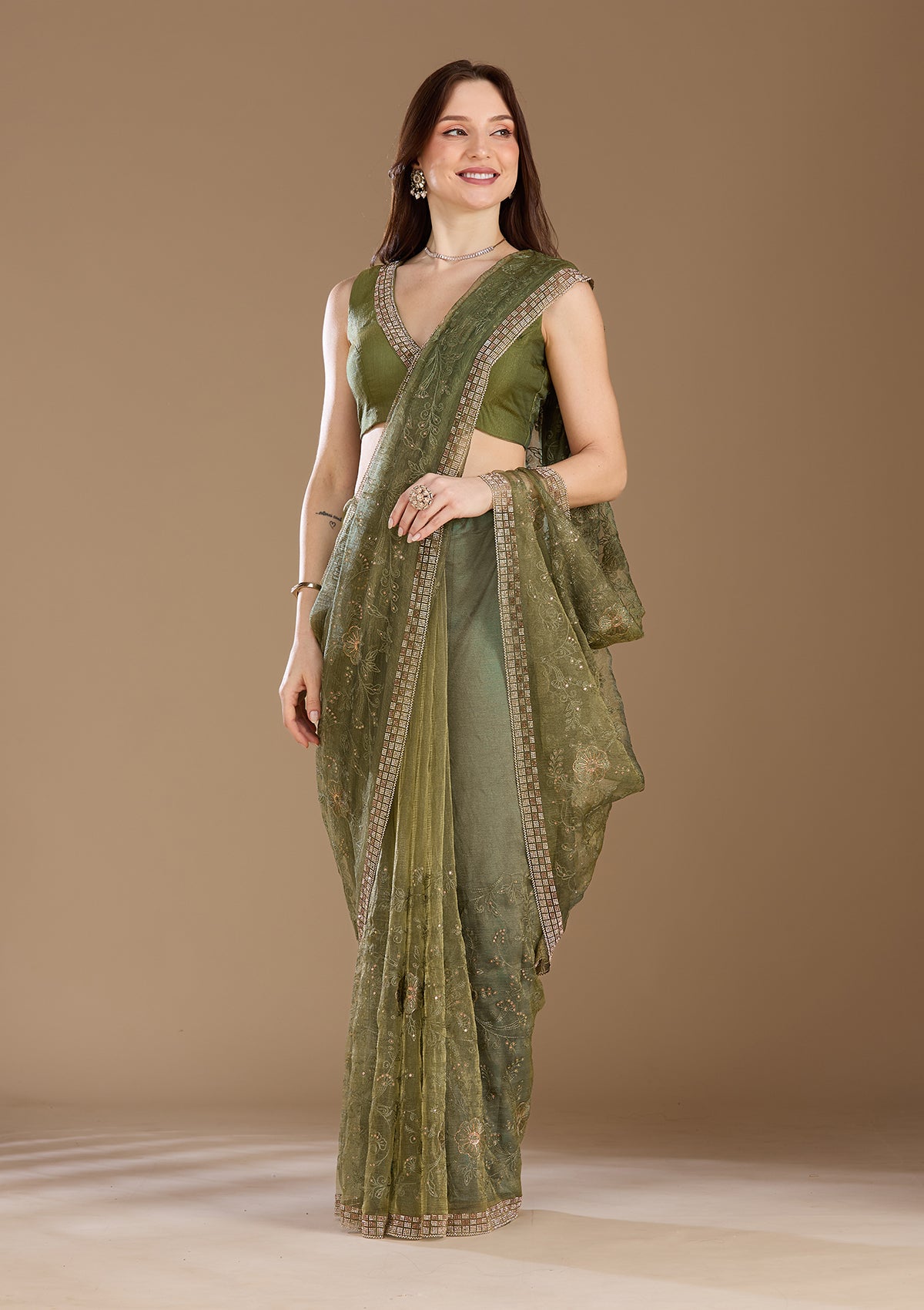 Mehendi Threadwork Tissue Saree
