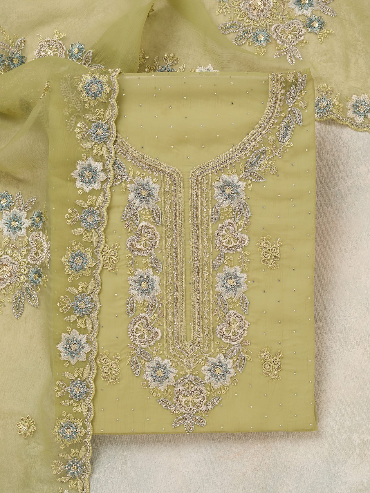 Pista Green Zariwork Organza Unstitched Salwar Suit
