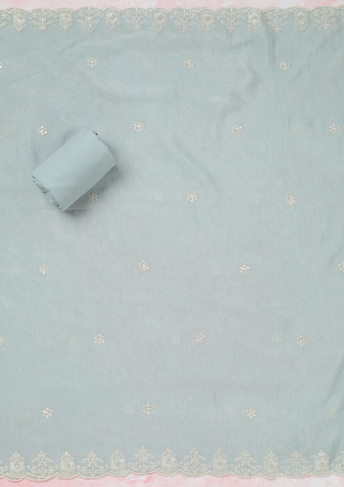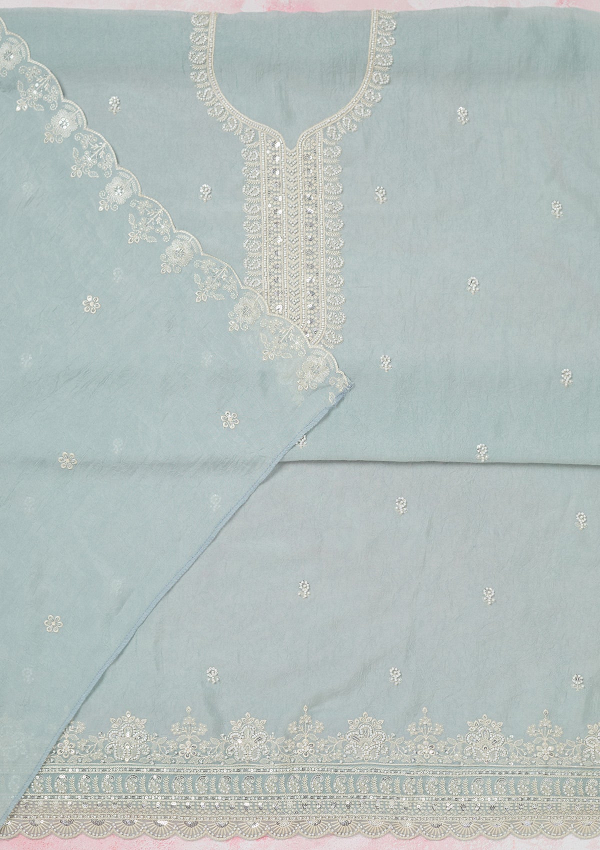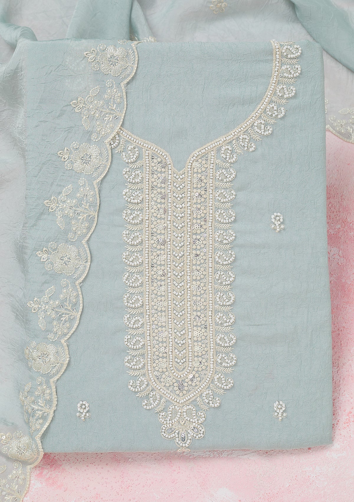 Sea Green Pearlwork Soft Raw Silk Unstitched Salwar Suit