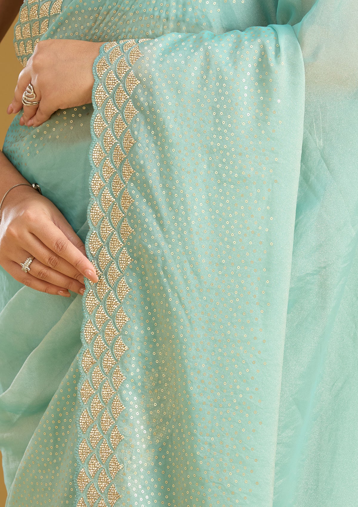 Sea Green Sequins Tissue Saree