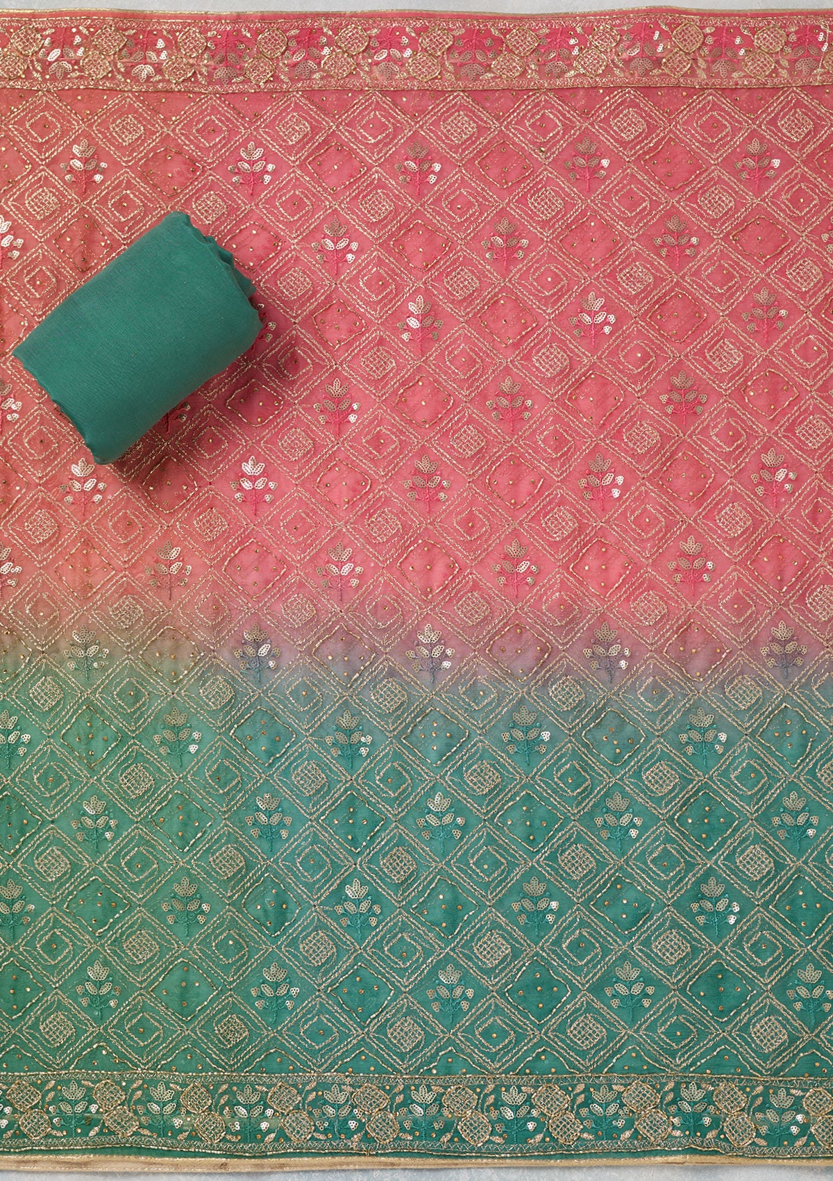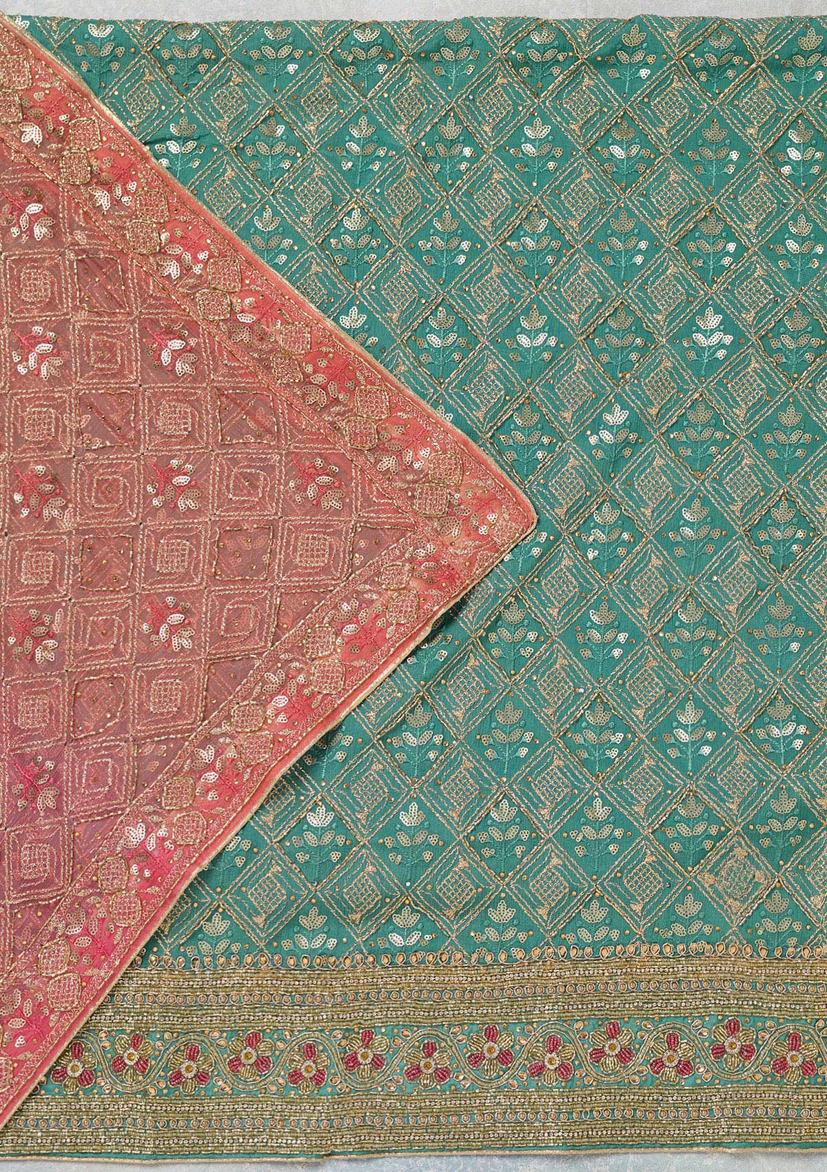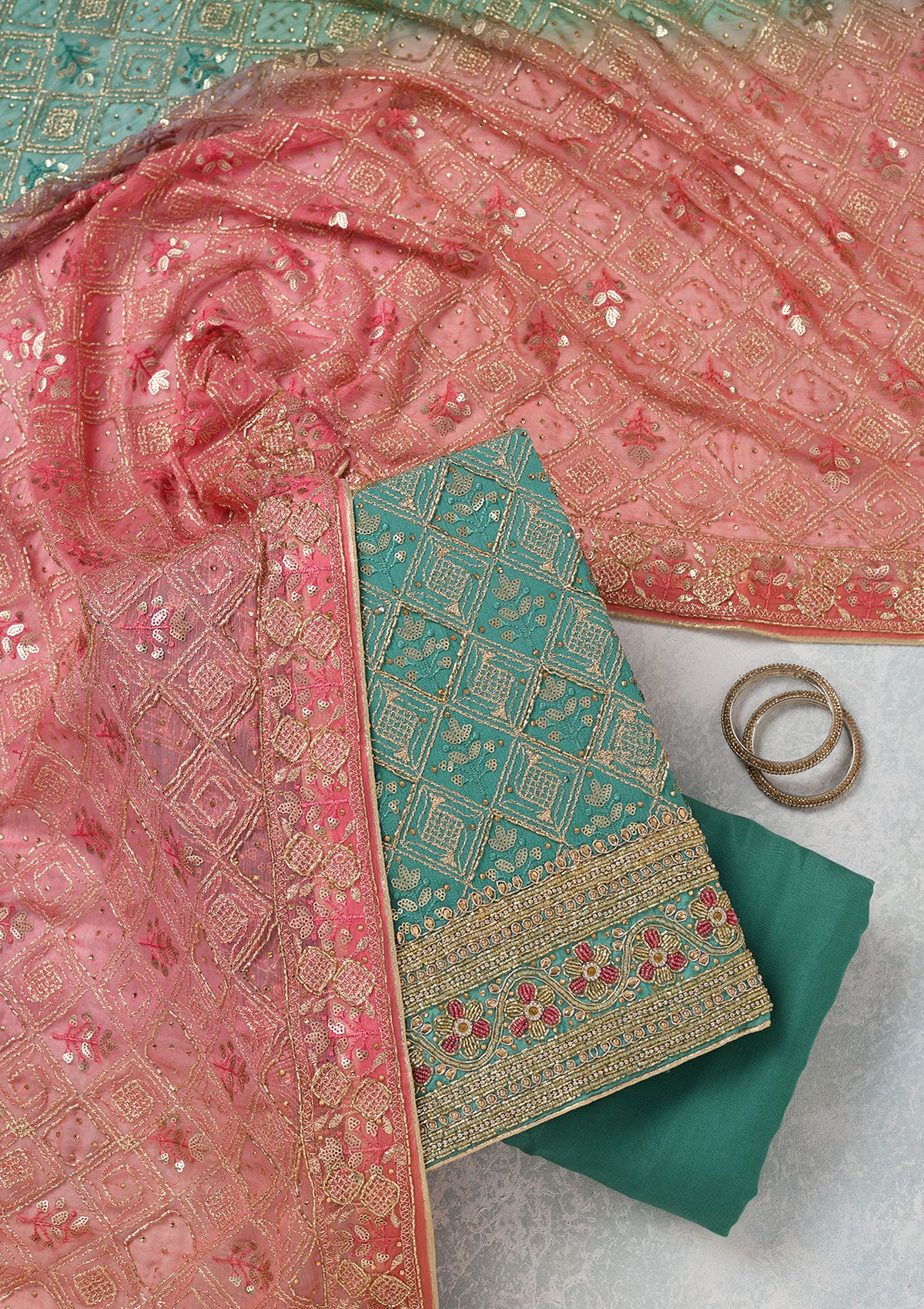 Sea Green Zariwork Georgette Unstitched Salwar Suit