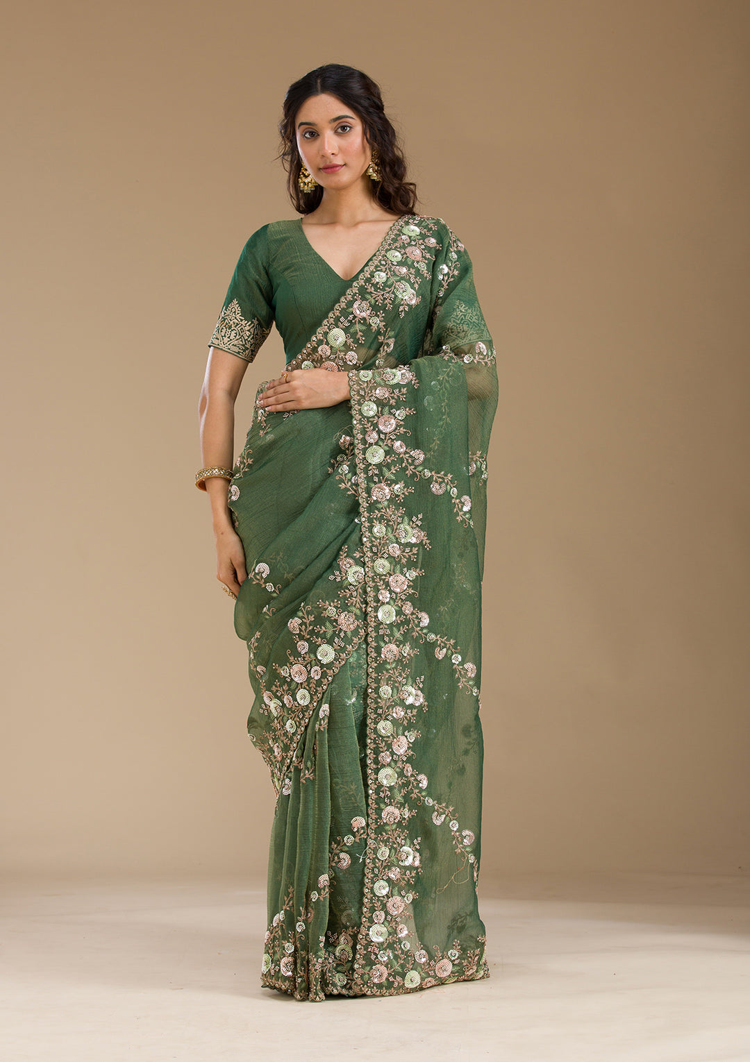 | Bottle Green Sequins Tissue Saree | ₹ 7,192 | |