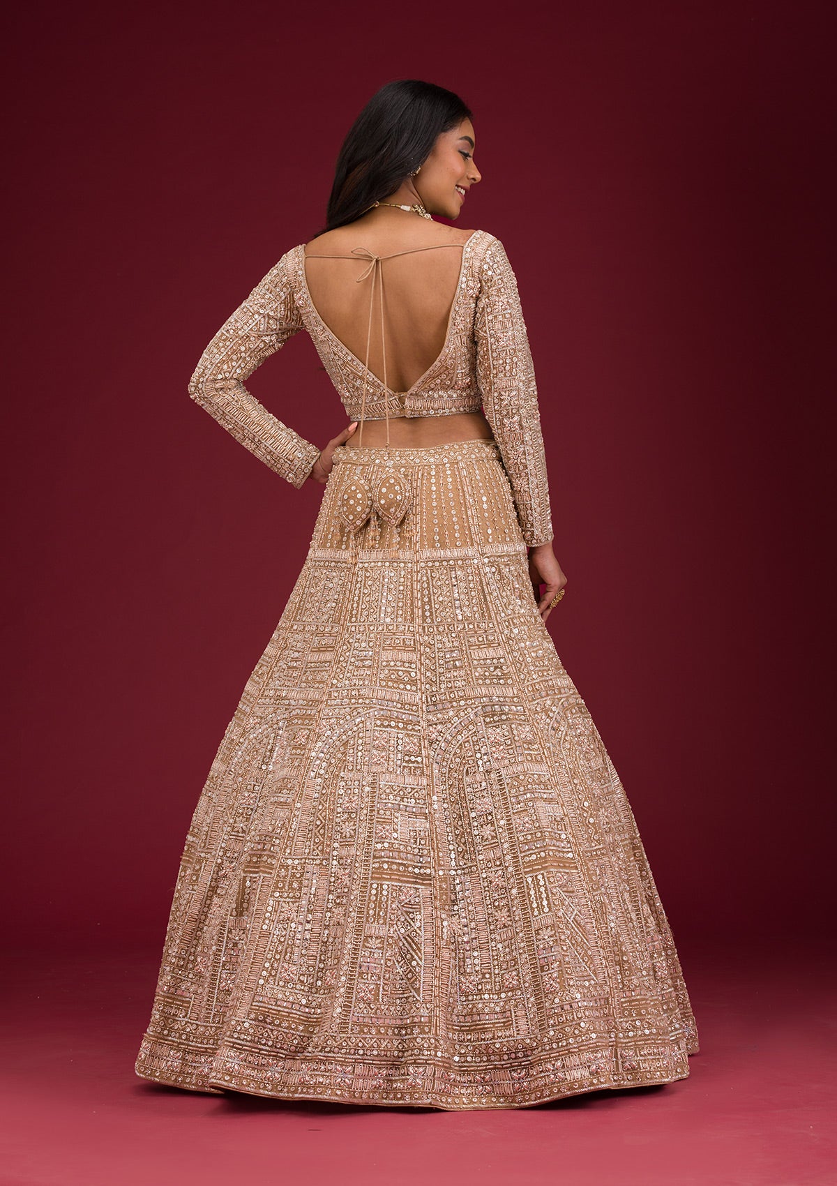 Dive into the world of glamour with Koskii's twinkling Golden Lehenga, a mesmerizing masterpiece crafted in luxuriously soft net fabric and adorned with radiant sequins. Perfect for those who adore living life vibrantly, this lehenga flares with every spin, capturing every light and eye in the room. Feel the fabric embrace your form, as you shine like a daytime star at any grand event!.