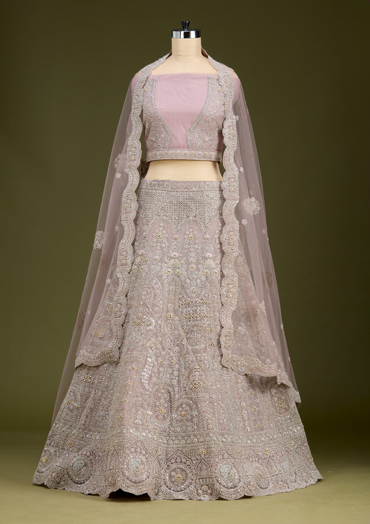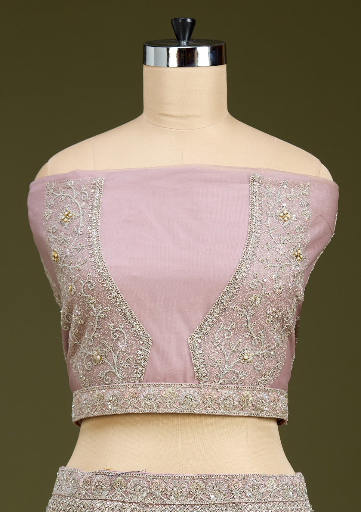 Light Lavender Readymade Lehenga in Net fabric. The Lehenga is embellished with Cording embroidery. Accompanied with an Readymade blouse and dupatta. Comes with the Koskii promise of premium quality.