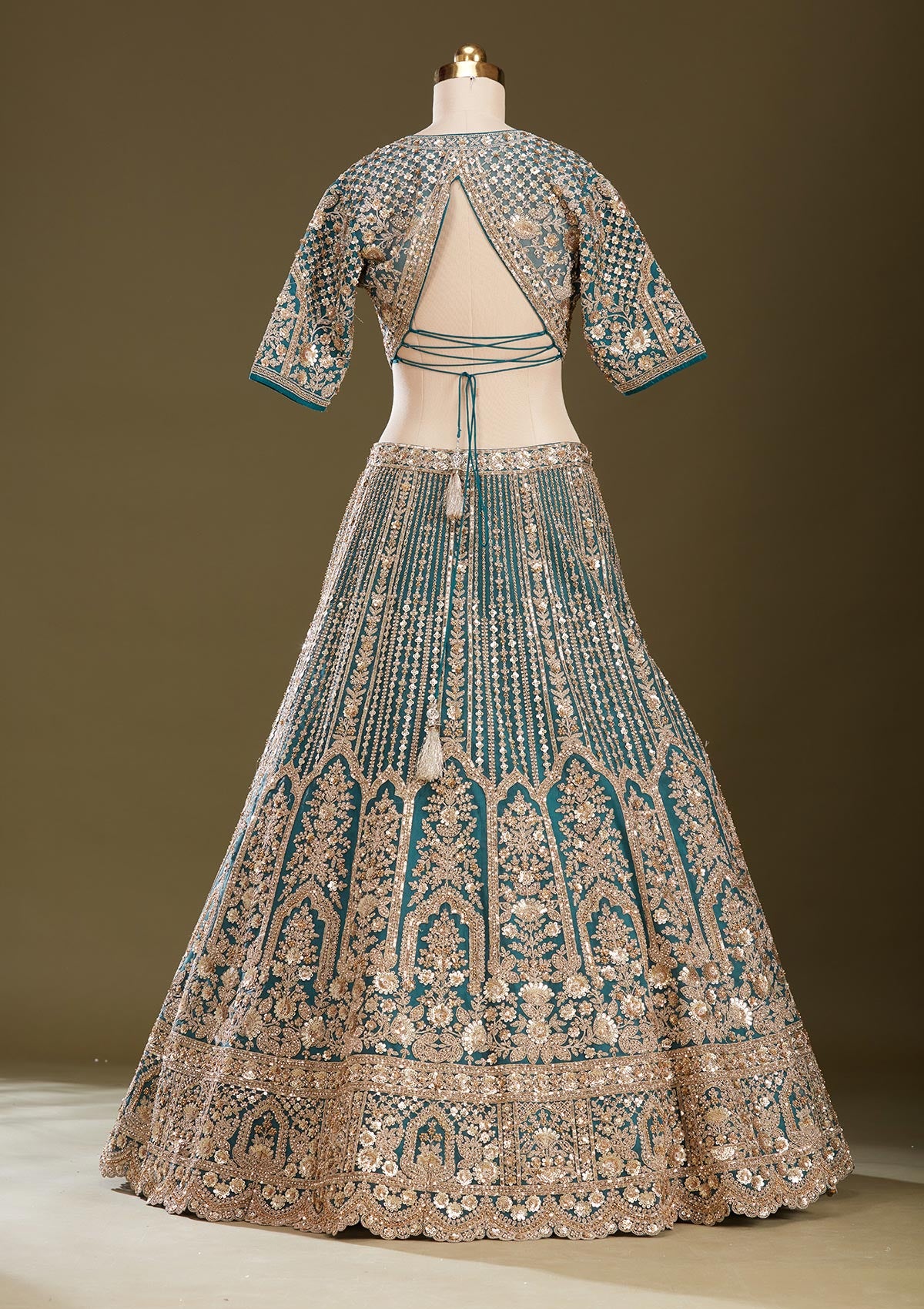 Peacock Blue Sequins Net Readymade Lehenga