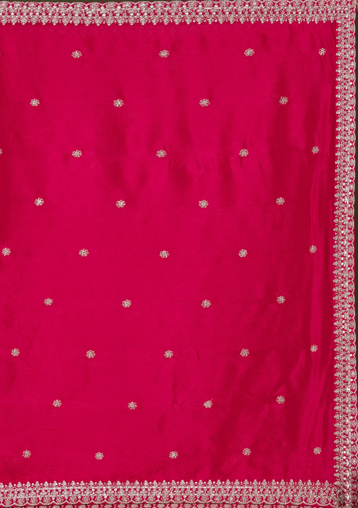 Pink Readymade Lehenga in Crepe fabric. The Lehenga is embellished with Zariwork (Gold) embroidery. Accompanied with an Readymade blouse and dupatta. Comes with the Koskii promise of premium quality.