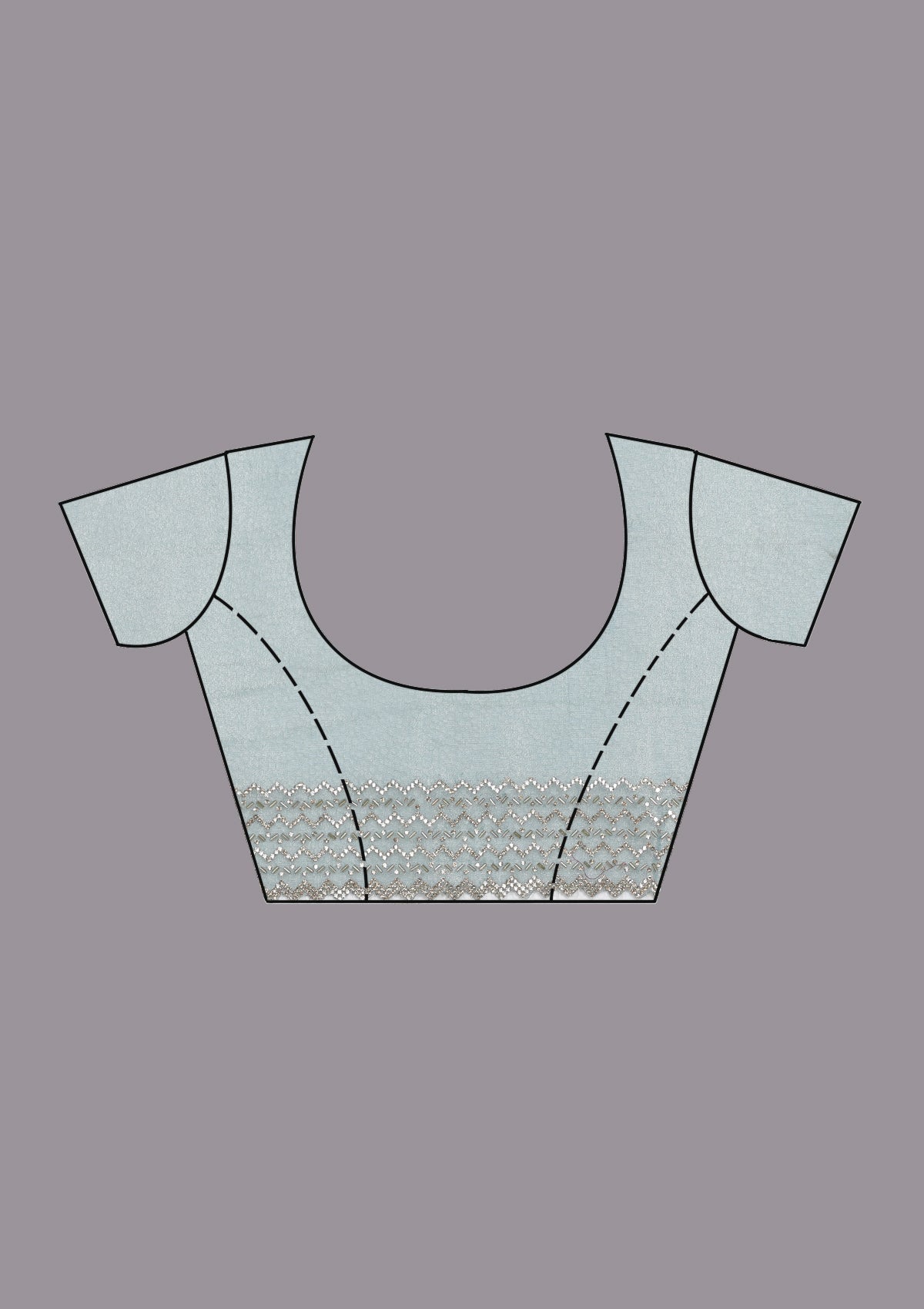 Blue Saree in Organza fabric. The Saree is elevated with Stonework (Gold) embroidery. It comes with an Unstitched blouse. Comes with the Koskii promise of premium quality.