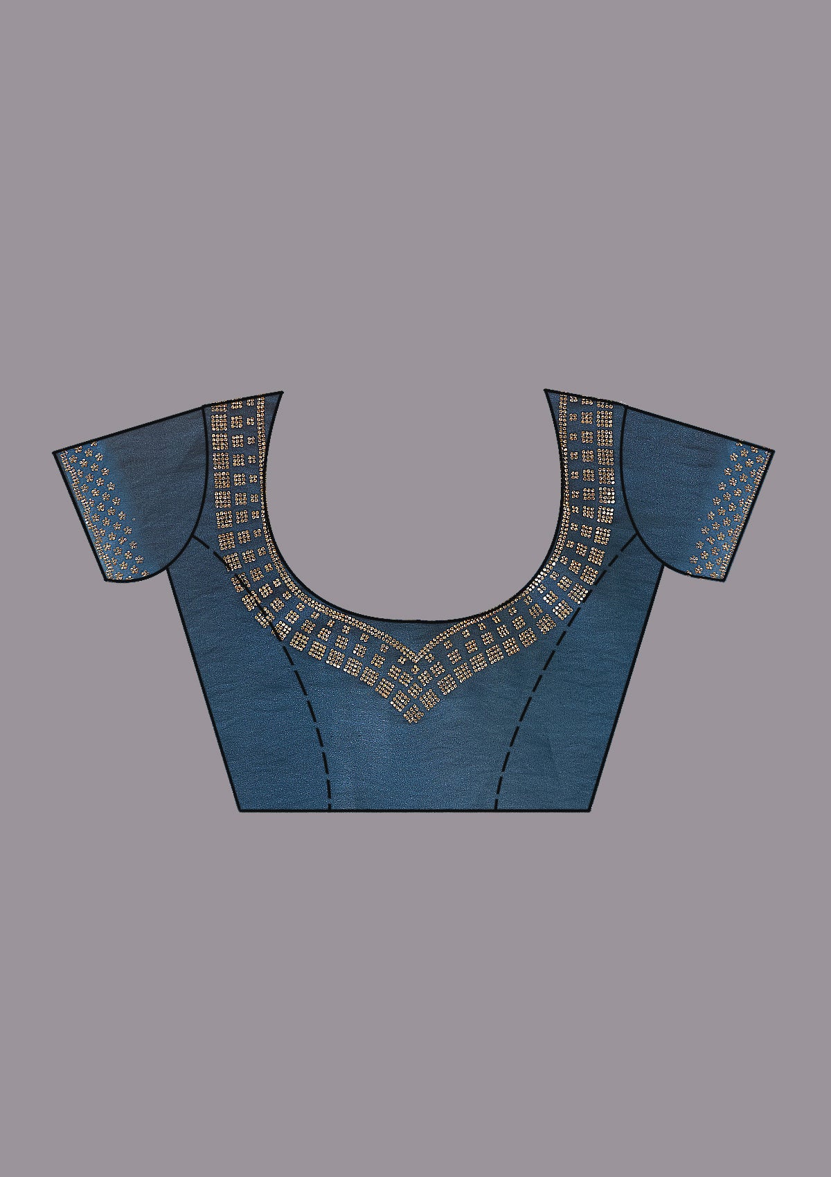 Pista Green Saree in Organza fabric. The Saree is elevated with Stonework (Gold) embroidery. It comes with an Unstitched blouse. Comes with the Koskii promise of premium quality.